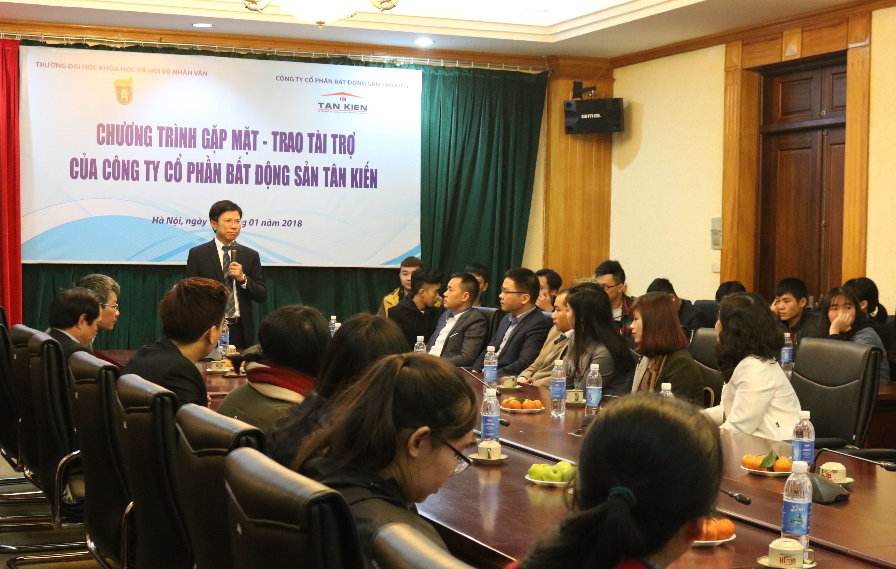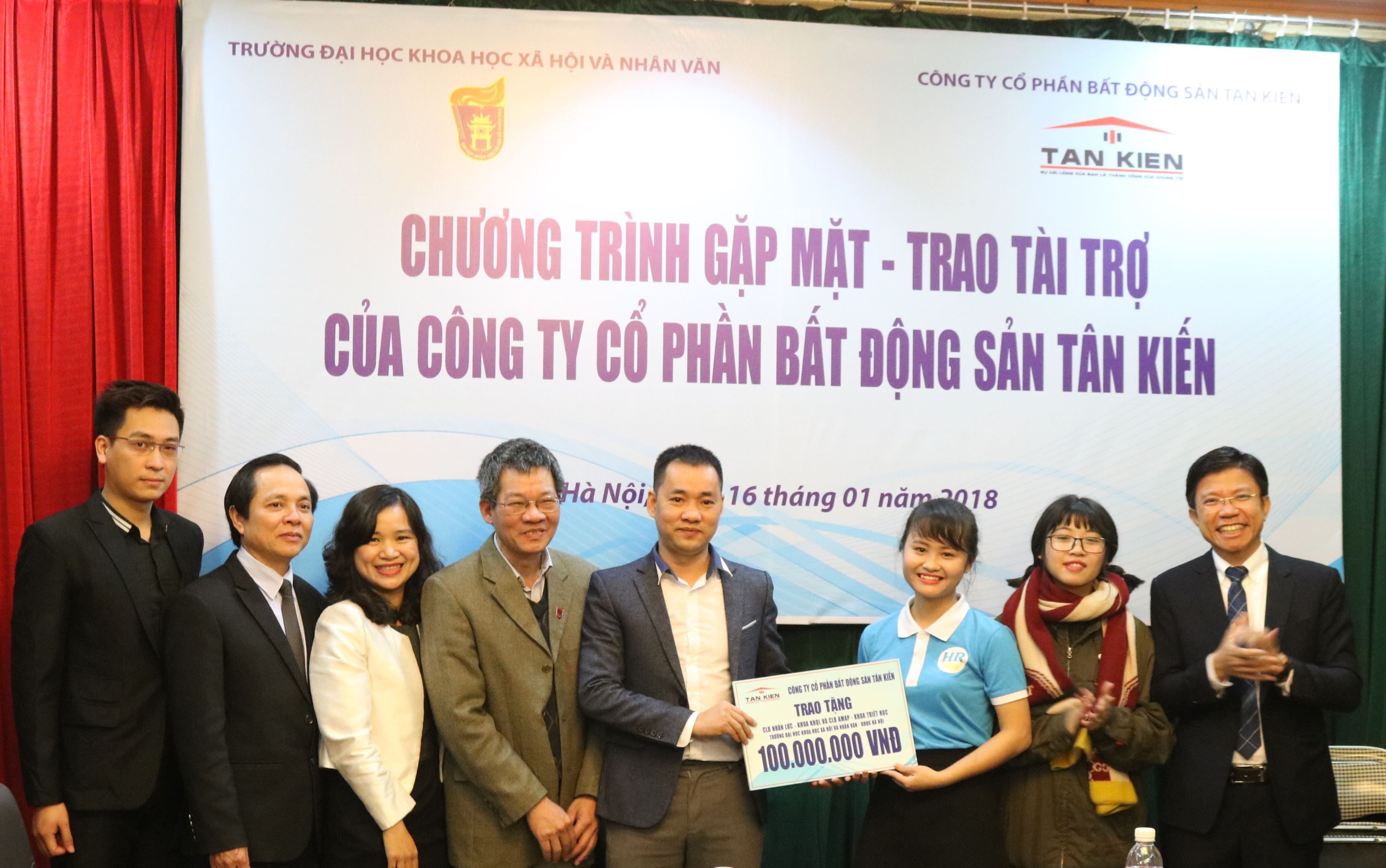 Tại buổi lễ, đại diện nhà tài trợ là Công ty Cổ phần thương mại và Dịch vụ Bất động sản Tân Kiến đã trao số tiền tài trợ 100 triệu đồng cho 2 CLB: CLB Nhân lực thuộc LCĐ Khoa KHQL và CLB AMAP thuộc LCĐ Khoa Triết học.