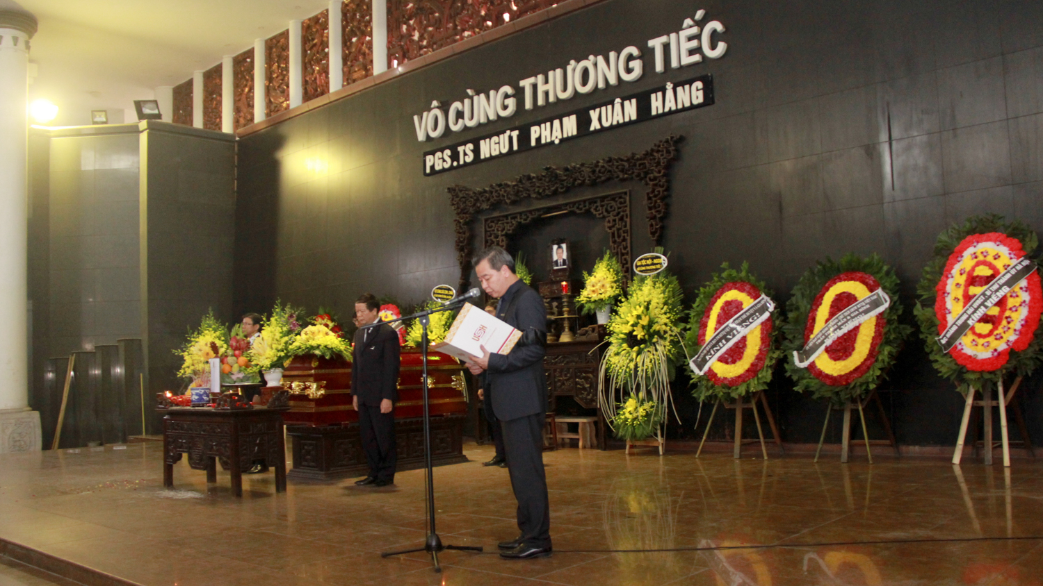 Hôm nay, chúng ta có mặt tại đây để tưởng nhớ và tiễn biệt PGS.TS.NGƯT Phạm Xuân Hằng - một cán bộ suốt đời tận tụy thực hiện và hoàn thành mọi nhiệm vụ mà Đảng, Nhà nước và xã hội trao cho, về cõi vĩnh hằng.