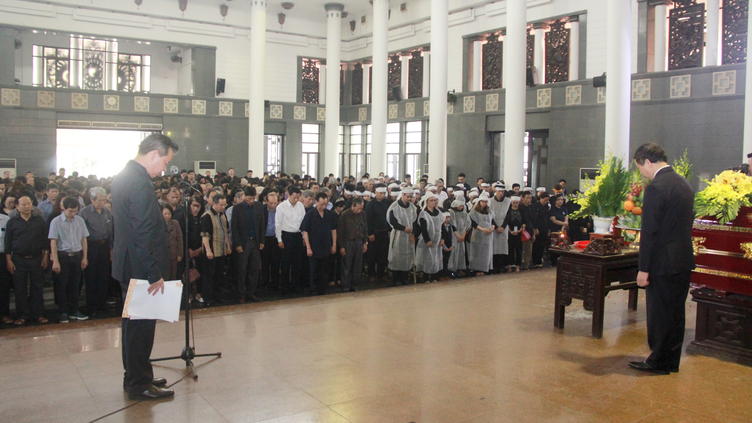 Trước giờ vĩnh biệt và tiễn đưa ông về nơi an nghỉ cuối cùng, xin quý vị dành một phút mặc niệm. Phút mặc niệm bắt đầu.