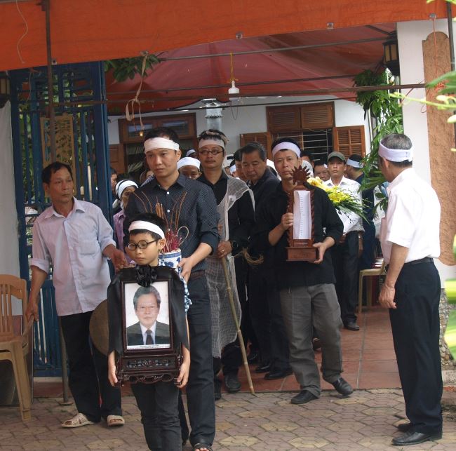 Trong quá trình lâm bệnh trọng, mặc dù các thầy thuốc đã hết lòng cứu chữa, các con cháu đã hết lòng chăm sóc nhưng sinh, lão, bệnh, tử có ai mà thoát được? Ông đã vĩnh biệt chúng ta. Cho phép chúng tôi, thay mặt ban Tổ chức Lễ tang, đồng nghiệp, bạn bè, đồng chí, môn sinh, bà con thân thích, khối phố…được chia sẻ nỗi đau mất mát này với gia đình. Cầu chúc cho linh hồn ông siêu thoát.