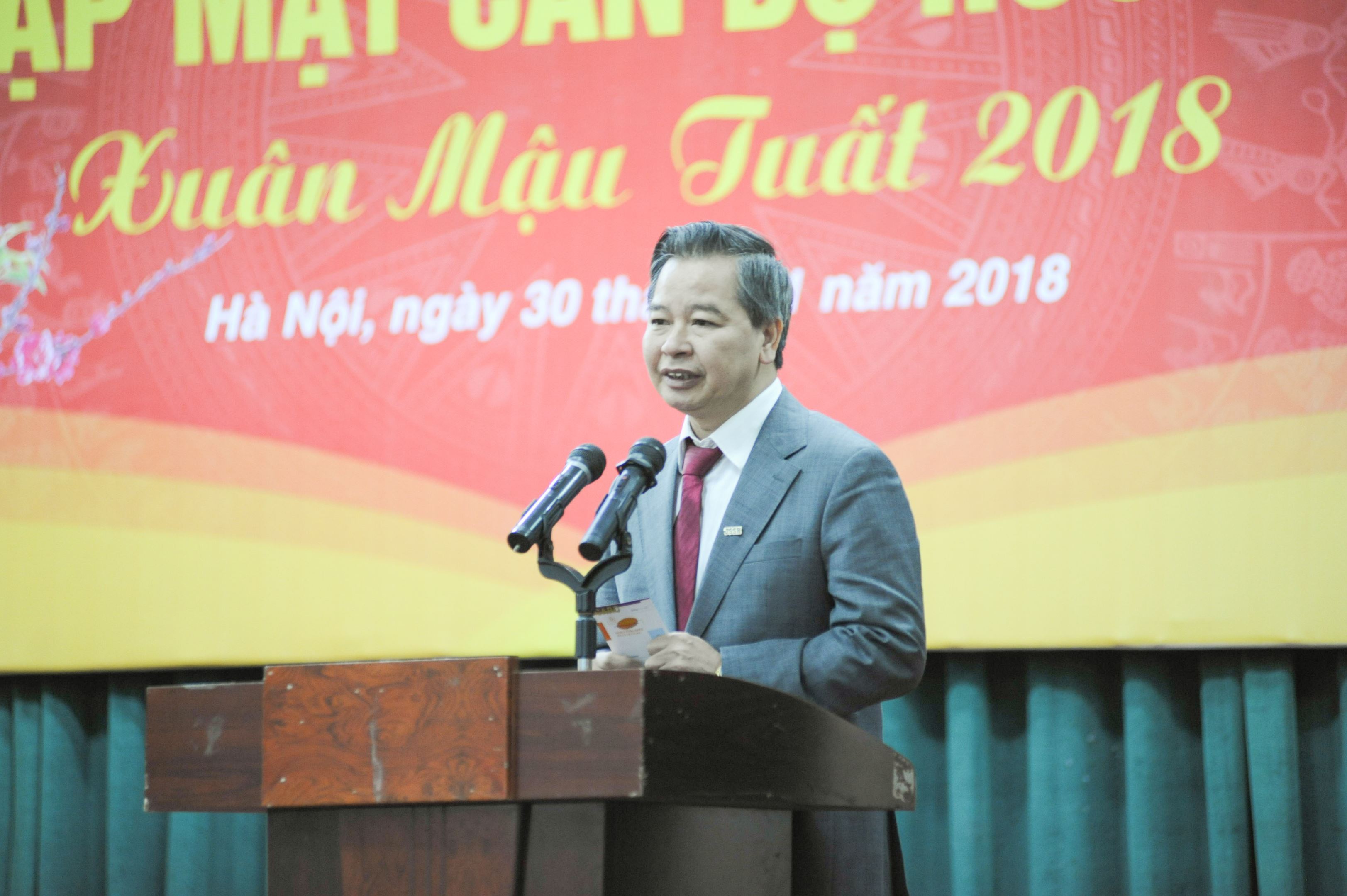 Tại buổi lễ, trước tập thể cựu giáo chức, GS.TS Phạm Quang Minh báo cáo thành tích trong năm học vừa qua của Nhà trường và gửi lời chức mừng năm mới tới các thầy cô.
