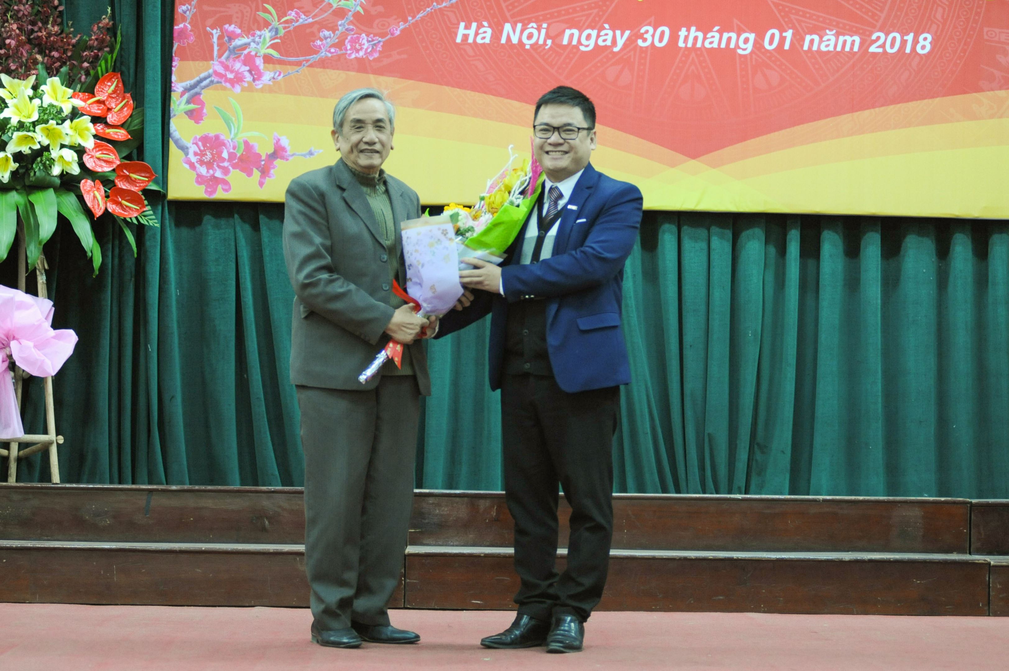 TS. Trần Bách Hiếu trao tặng bó hoa tới GS.NGND Vũ Dương Ninh