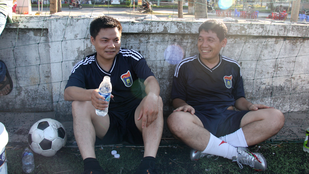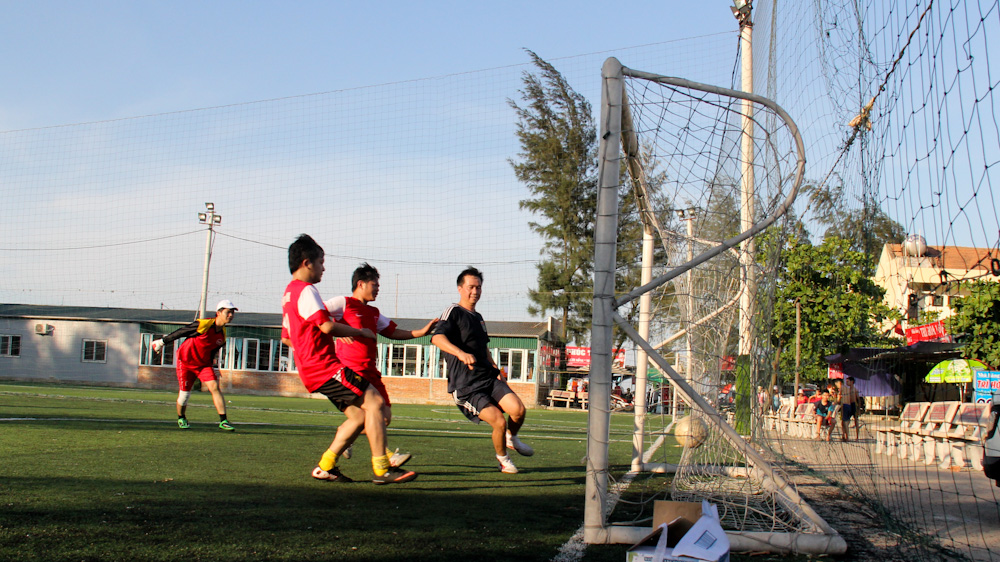 Thầy Huy Cường từ thủ môn của hiệp 1 chuyển lên làm vị trí hậu vệ ở hiệp 2