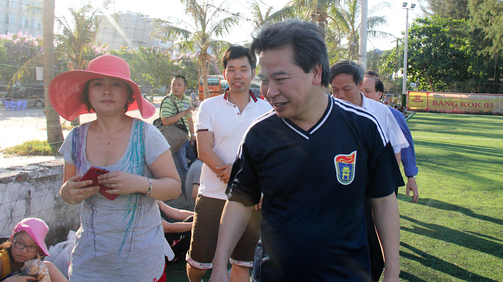 GS.TS Nguyễn Văn Khánh - Hiệu trưởng Nhà trường cũng tham gia vào đội cỗ vũ cho đội bóng