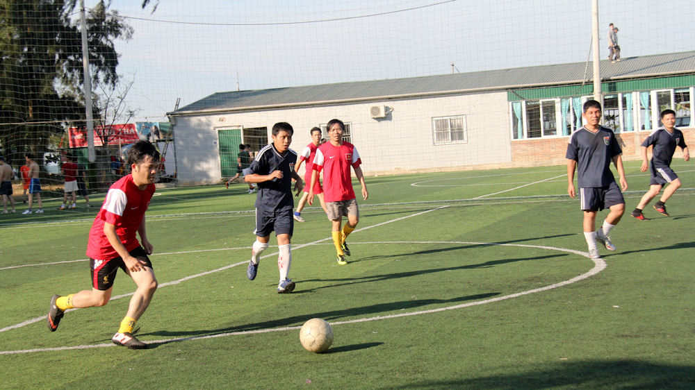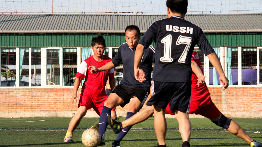 Từ pha chuyền bóng của đồng đội, thầy Nguyễn Văn Thủy vượt qua hậu vệ của đối phương băng lên và ghi bàn thắng thứ 4 của Trường ĐHKHXH&NV vào lưới đối phương