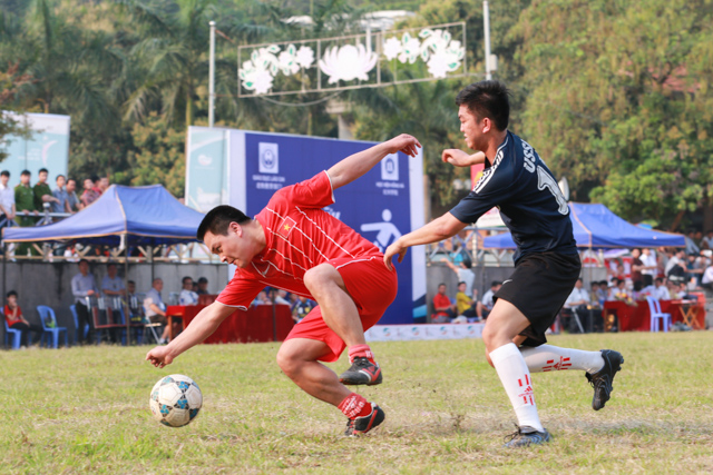 Tuy chiếm ưu thế nhưng đội Trường ĐHKHXH&NV vẫn bị cầm hoà với tỉ số 1-1 cho đến hết trận đấu với đội HV Hồng Hà.
