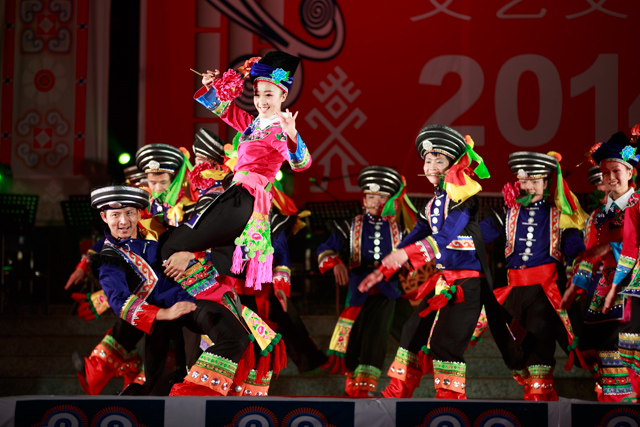 Tiết mục hát múa mở màn đêm Giao lưu văn nghệ do đoàn Giáo dục Lào Cai thể hiện.