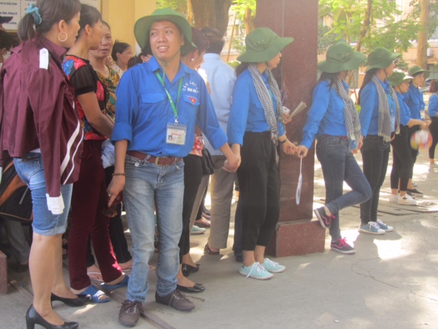 Nhìn thấy anh khoác trên mình màu áo xanh tình nguyện, thấy anh tươi cười nắm tay những đồng đội của mình, cùng xung kích trên mặt trận hoạt động trước cổng trường Nhân văn mùa thi THPT 2015 mà ít ai để ý rằng anh ấy là một người bị khuyết tật bẩm sinh từ nhỏ.
