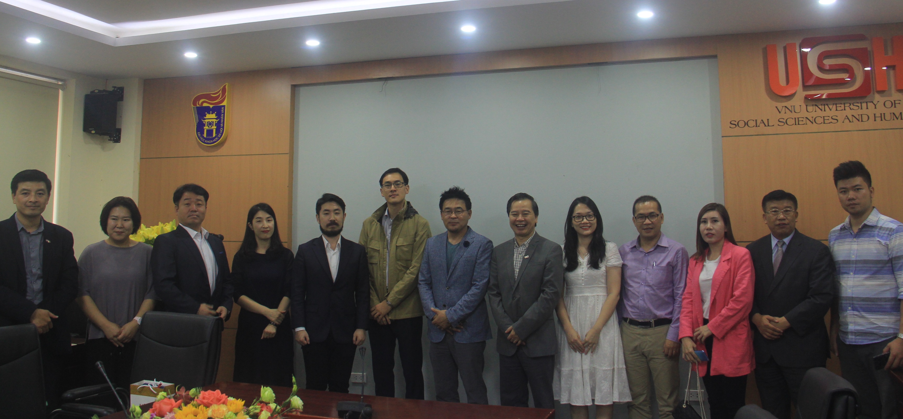 Tại buổi làm việc, GS.TS Phạm Quang Minh đã giới thiệu sơ lược về Trường ĐHKHXH&NV, một cơ sở hàng đầu về nghiên cứu và đào tạo KHXH&NV tại Việt Nam. Hiện Nhà trường có hơn 10.000 sinh viên cùng khoảng 500 cán bộ, giảng viên. Một trong những mục tiêu chiến lược của Nhà trường là quốc tế hóa, thông qua tăng cường công bố quốc tế và quan hệ với các đối tác nước ngoài. Nhà trường hợp tác với nhiều trường đại học Hàn Quốc như Đại học Seoul, Đại học Ngoại ngữ Hankuk, Đại học Ngoại ngữ Busan. Bộ môn Hàn quốc học, Khoa Đông phương học của Nhà trường là một cơ sở có uy tín trong lĩnh vực Hàn Quốc học, với tỷ lệ sinh viên tốt nghiệp tìm được việc làm rất cao. Hiệu trưởng hy vọng Nhà trường có thể triển khai hợp tác với ba trường đại học phía bạn trong các hoạt động hợp tác khác nhau.