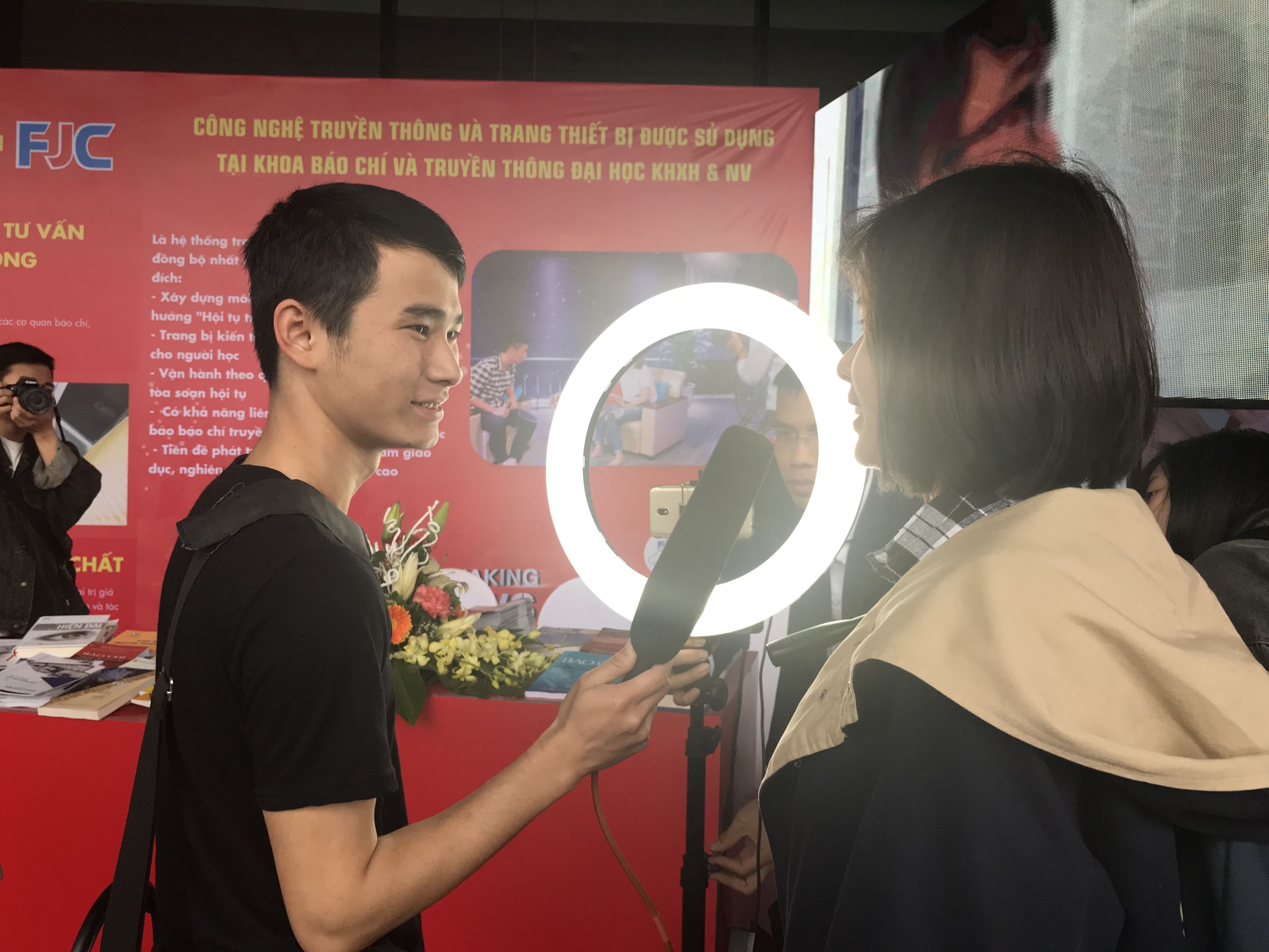 Gian trưng bày của Khoa cũng đón nhiều đại biểu làm trong lĩnh vực báo chí và truyền thông ghé thăm để tìm các cơ hội hợp tác