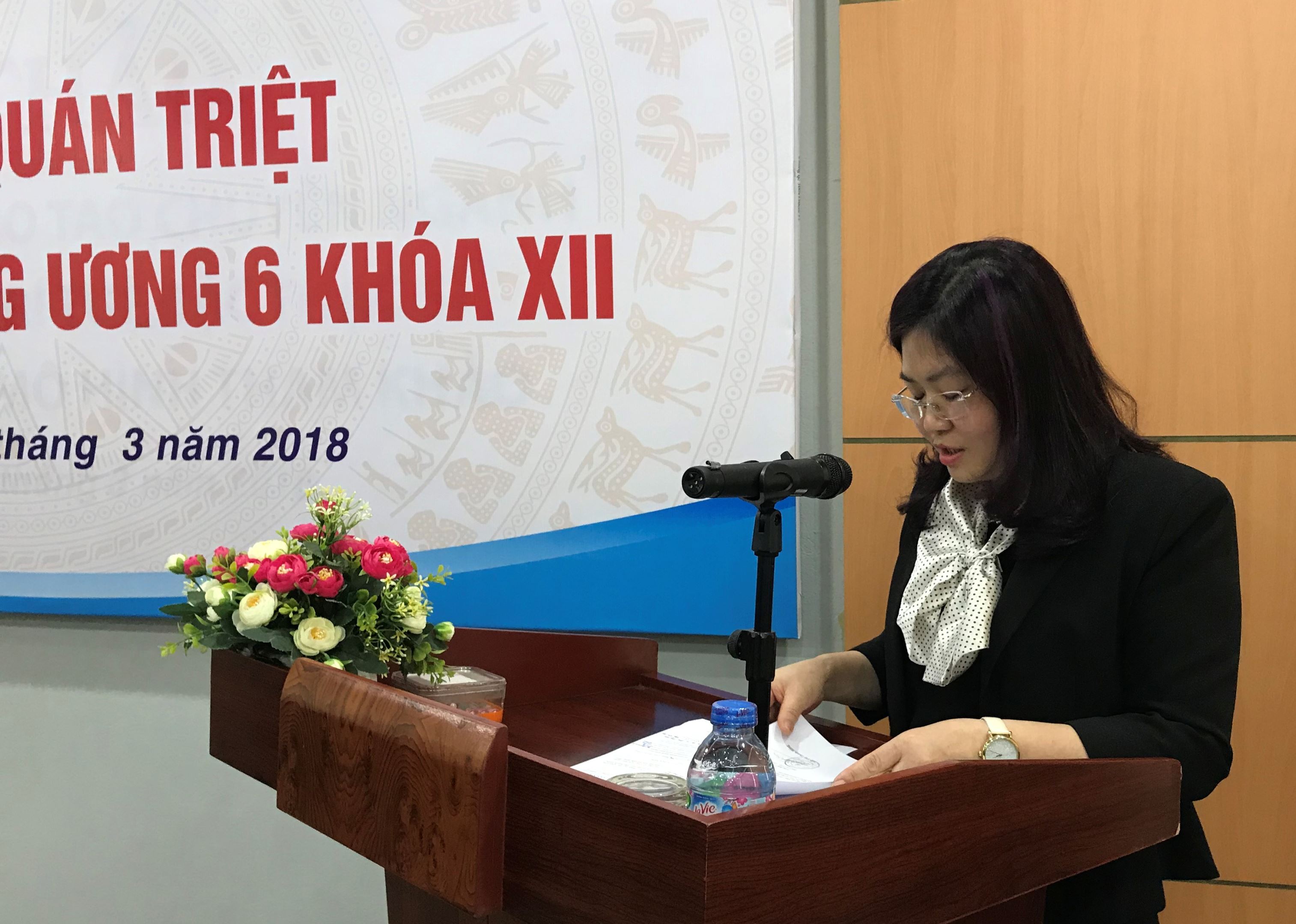Hội nghị đã nghe đồng chí Bí thư Đảng uỷ Nguyễn Văn Kim giới thiệu tổng quan về Hội nghị lần thứ 6 Ban Chấp hành Trung ương Đảng khoá XII. Theo đó, Hội nghị Trung ương 6 khoá XII được tổ chức từ ngày 4-11/10/2017 đã thảo luận và quyết định ban hành những nghị quyết, kết luận rất quan trọng.