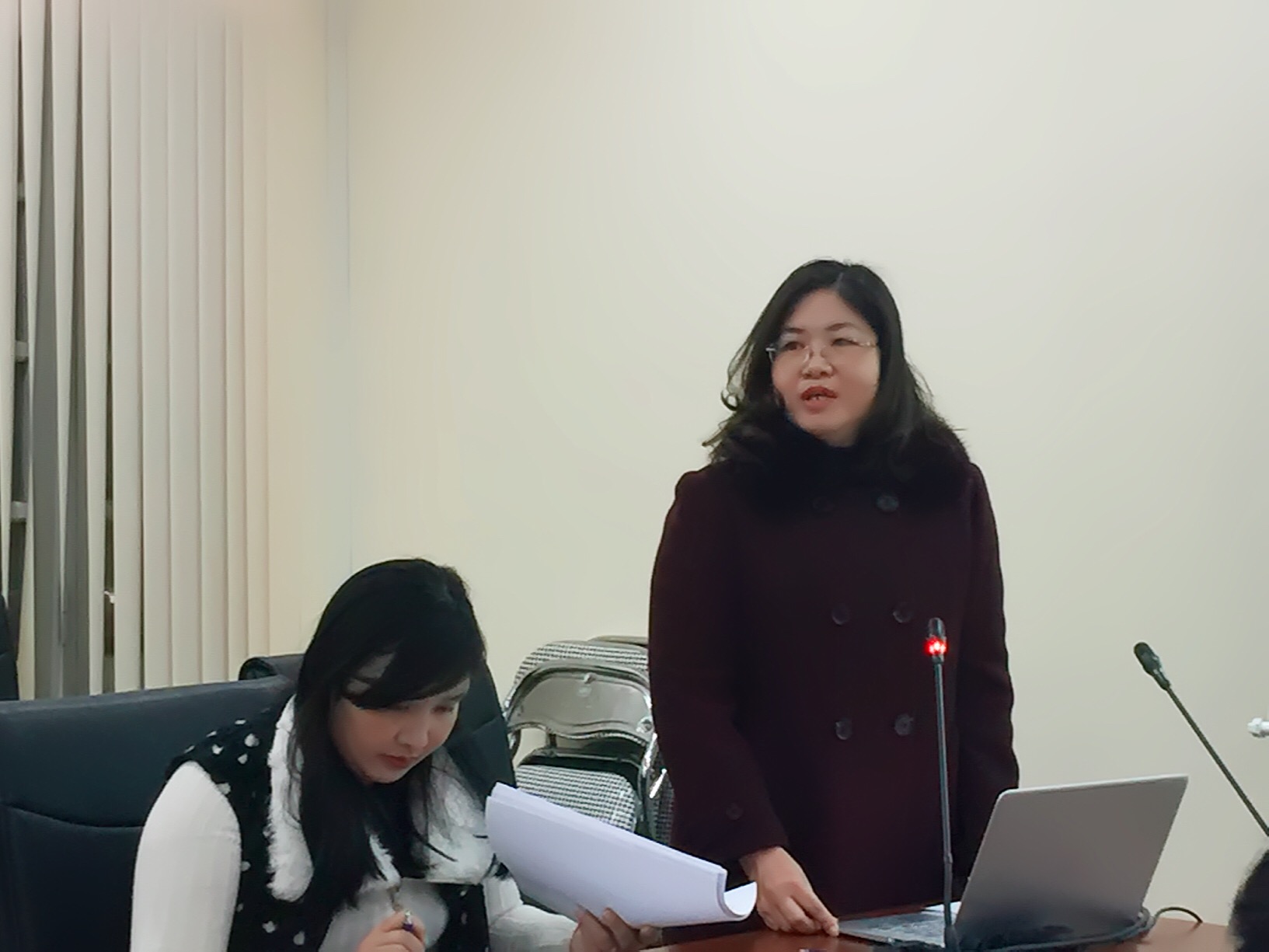 TS. Ngô Thị Kiều Oanh (Trưởng phòng Tổ chức Cán bộ, Chủ tịch Công đoàn Trường) trình bày nội dung sơ kết hoạt động công đoàn