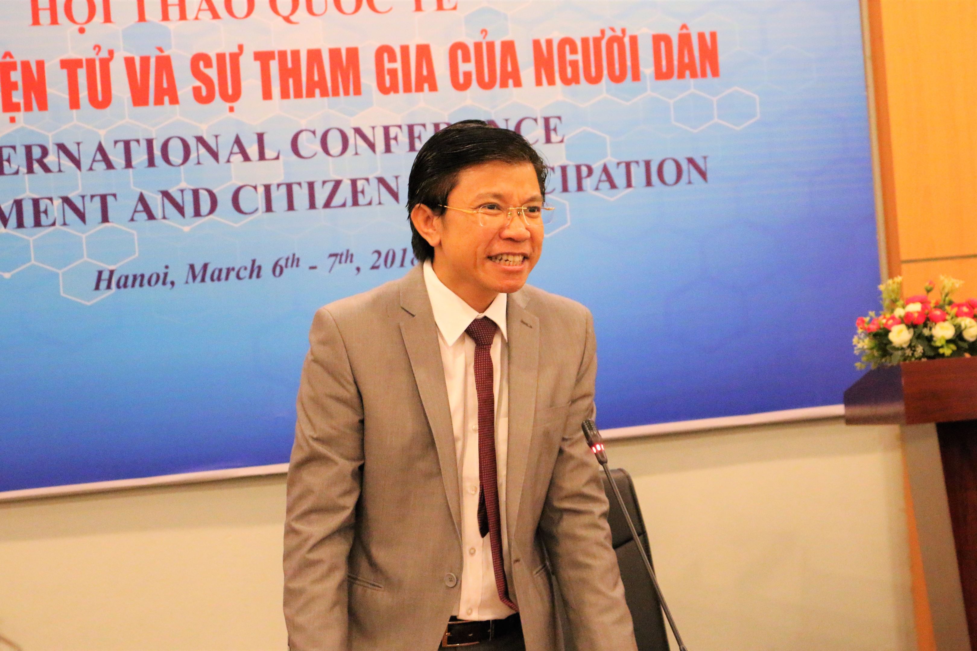 Phát biểu khai mạc hội thảo, PGS.TS Hoàng Anh Tuấn bày tỏ niềm vui khi được tiếp đón các chuyên gia đại diện đến từ các trường đại học tới cùng nhau thảo luận, chia sẻ những vấn đề về chính phủ điện tử. Hội thảo này giúp các nhà khoa học, nhà quản lý học hỏi được những kinh nghiệm về phát triển của chính phủ điện tử của nước Đức để có thể áp dụng vào mô hình chính phủ điện tử Việt Nam.