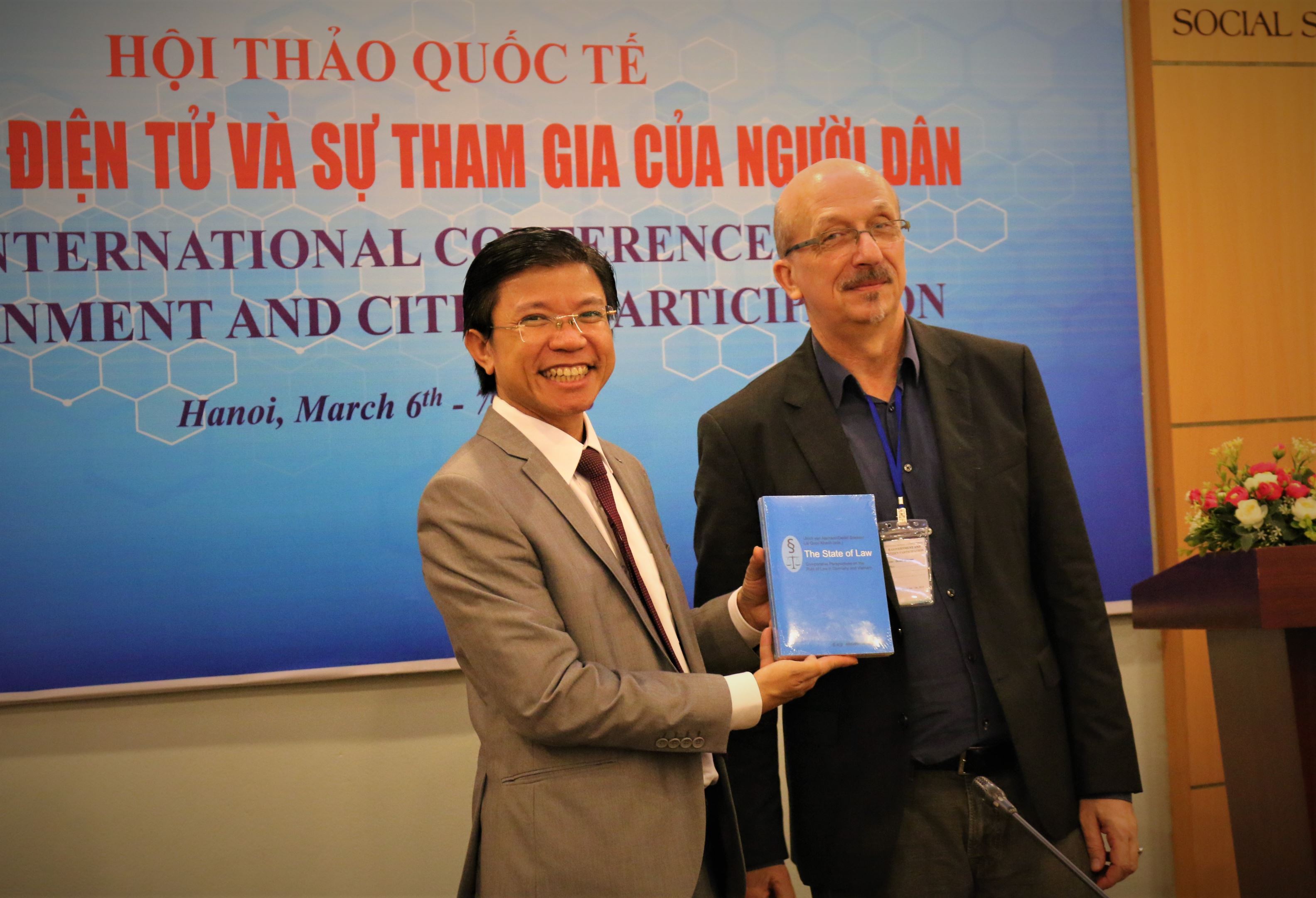 GS. Detlef Briesen tặng thầy Hoàng Anh Tuấn cuốn sách về Chính phủ điện tử