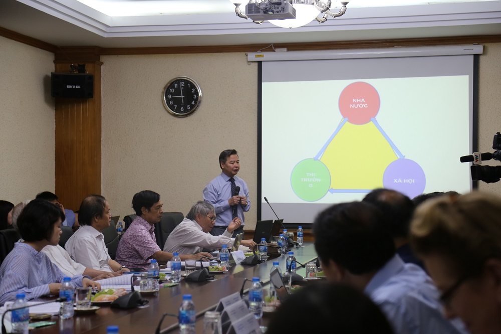Tại hội thảo, GS.TS Phạm Quang Minh đã trình bày báo cáo đề dẫn “Hướng tới một mô hình quản lý phát triển xã hội bền vững ở Việt Nam”. Báo cáo chỉ ra những vấn đề xã hội chủ yếu tại Việt Nam hiện nay như sự phân cực giàu nghèo do không đủ nguồn lực nhanh chóng, kịp thời; thiếu sót trong đào tạo nghề và giải quyết việc làm; thiếu cơ chế phối hợp trong công tác bảo hiểm…Theo báo cáo, nguyên nhân chủ yếu của các vấn đề xã hội là chưa có sự tham gia, góp sức một cách bình đẳng của các chủ thể phi nhà nước trong điều chỉnh và quản lý các vấn đề đó. Từ đó, báo cáo đề xuất dịch chuyển từ mô hình quản lý phát triển xã hội sang quản trị phát triển xã hội, mà ở đó có sự tham gia bình đẳng, hợp tác và chia sẻ trách nhiệm giữa ba bên chính: chính phủ, thị trường và xã hội. Báo cáo kết luận với khuyến nghị đổi mới thể chế chính trị Việt Nam, theo hướng nâng cao trách nhiệm giải trình, tính minh bạch và tính nhất quán trong áp dụng luật pháp.