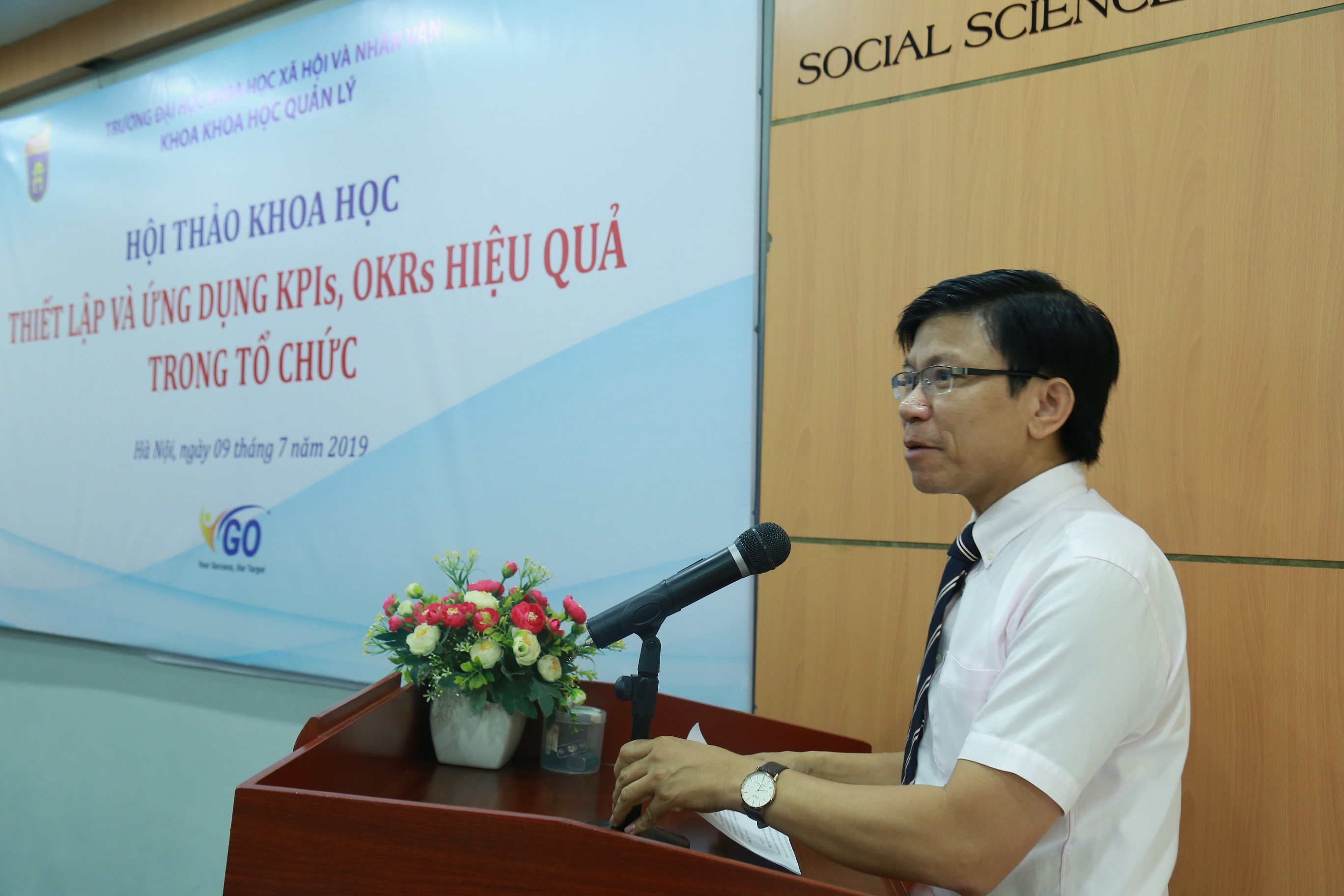 Phát biểu khai mạc Hội thảo, PGS.TS Hoàng Anh Tuấn (Phó Hiệu trưởng Trường ĐHKHXH&NV) nhấn mạnh: “KPIs và OKRs là công cụ giúp tổ chức có thể huy động tối đa nguồn lực, gìn giữ và xây dựng môi trường làm việc minh bạch, chuyên nghiệp. Tuy nhiên, rất nhiều doanh nghiệp, tổ chức chưa thực sự thành công trong việc sử dụng phương pháp này. Đặc biệt, OKRs còn chưa phổ biến rộng rãi. Vậy các doanh nghiệp/tổ chức đang gặp phải khó khăn, thử thách gì ? Cần làm gì để vượt qua những khó khăn đó và sử dụng hiệu quả KPIs và OKRs ? Đó là một nội dung trọng tâm của Hội thảo lần này”.