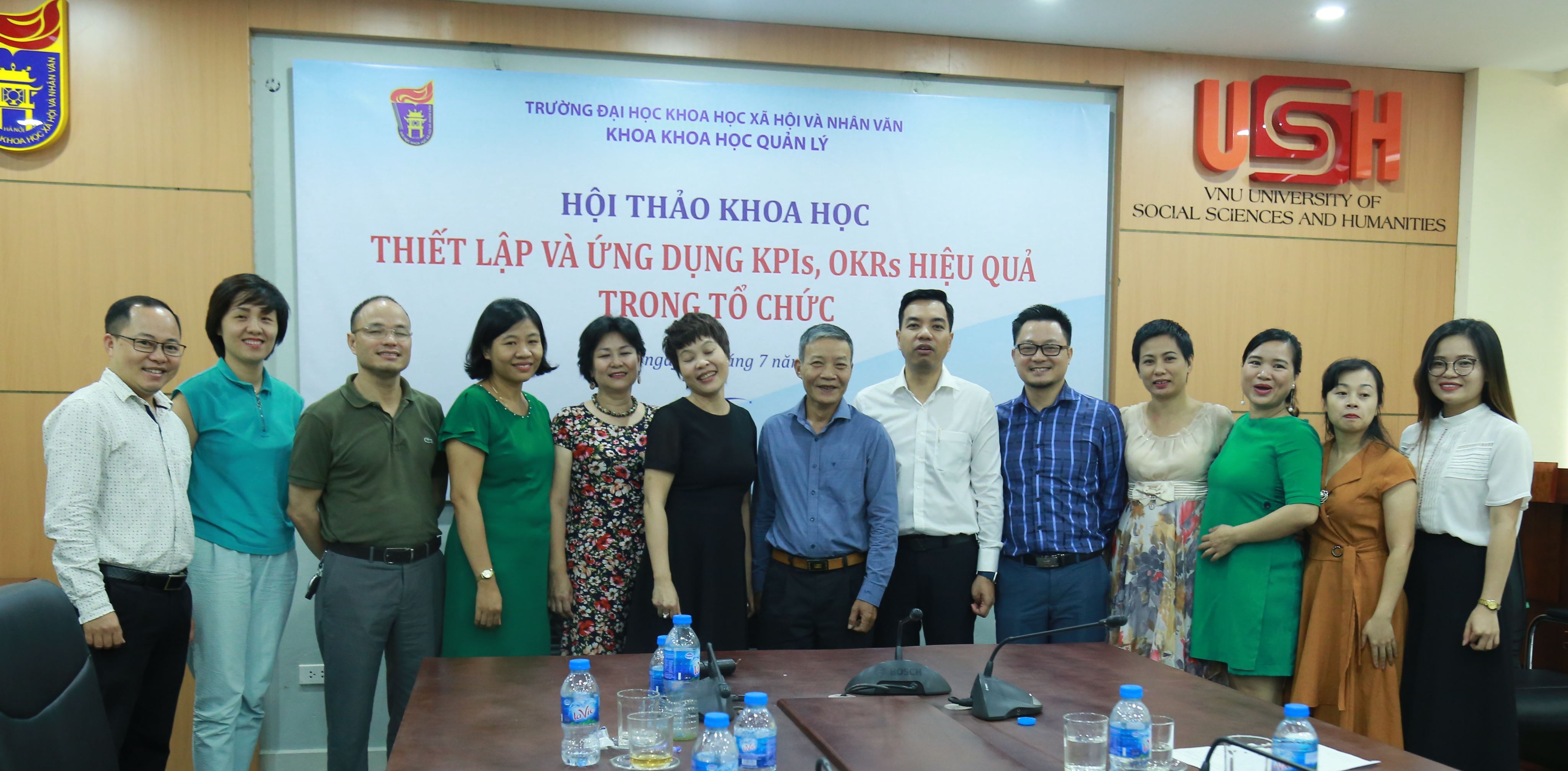 TS. Nguyễn Thị Kim Chi (Phó trưởng khoa Khoa học Quản lý, Trường ĐHKHXH&NV) đem đến Hội thảo tham luận “OKR và lợi ích của OKR cho doanh nghiệp Việt Nam”. Tham luận đề cập đến khái niệm về KPIs và OKRs và phân tích những hiệu quả tích cực khi áp dụng các phương pháp quản lý này trong hoạt động quản trị doanh nghiệp. Theo đó, KPIs là viết tắt của Key Performance, được hiểu là chỉ số đánh giá thực hiện công việc, bao gồm các chỉ số hiệu suất cơ bản, là công cụ đo lường, đánh giá hiệu quả công việc được thể hiện qua số liệu, tỷ lệ, chỉ tiêu định lượng. Tham luận cũng đưa ra cấu trúc của OKRs (Objectives and Key Results) bao gồm mục tiêu lớn và các kết quả then chốt, trong đó việc thực hiện các kết quả then chốt sẽ tiến đến hoàn thành mục tiêu lớn. Tuy nhiên, trong thực tế nhiều doanh nghiệp Việt Nam còn chưa thực sự thành công trong việc áp dụng 2 công cụ quản lý này.