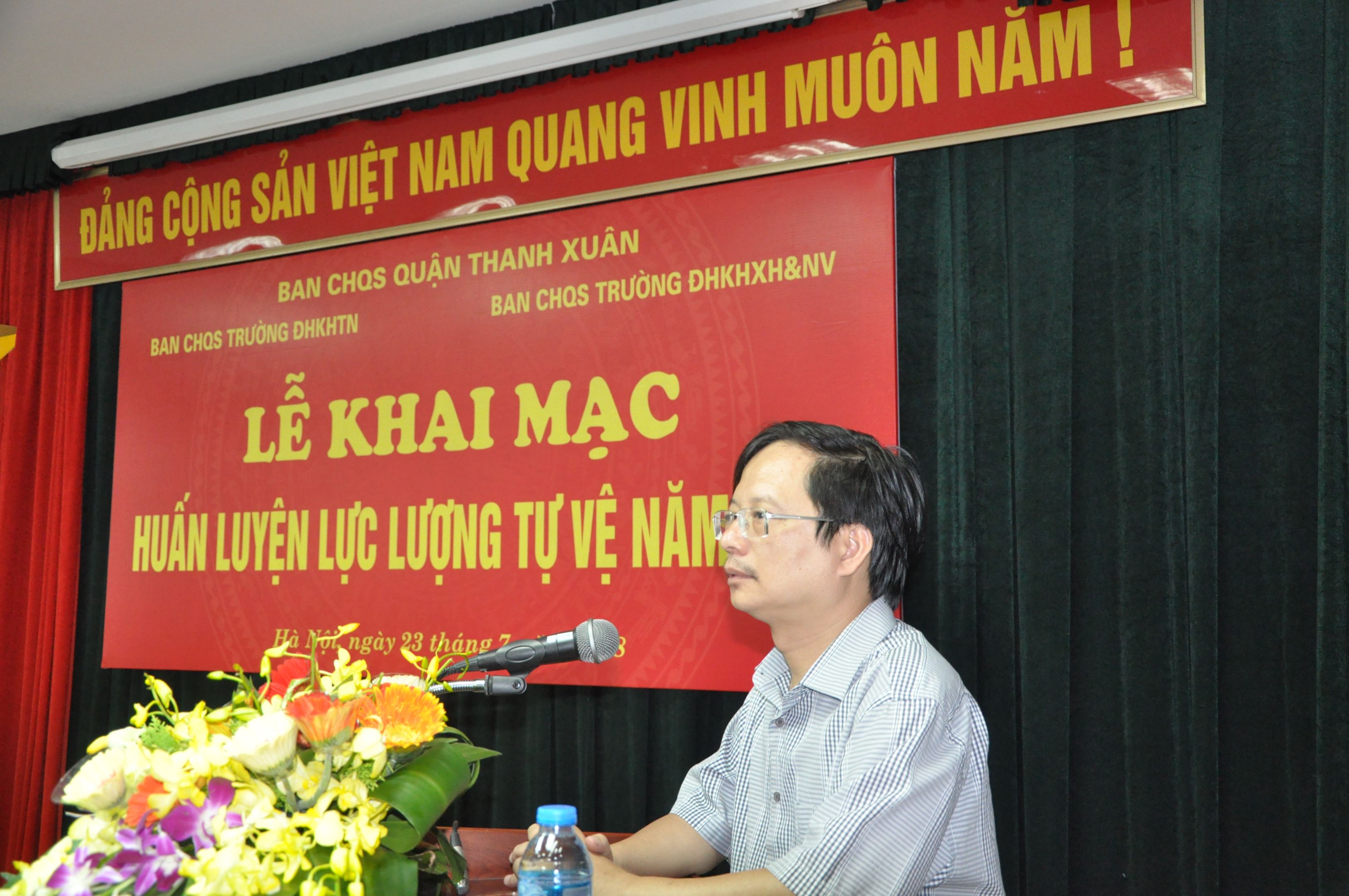 Phát biểu tại Lễ khai mạc, GS.TS Nguyễn Văn Kim tin tưởng rằng các đồng chí dân quân tự vệ sẽ hoàn thành tốt các yêu cầu của khóa huấn luyện vì đây là lực lượng đã được tuyển chọn từ cán bộ của mỗi trường. Lực lượng tự vệ của hai trường sẽ cùng các lực lượng khác trong hệ thống an ninh quốc phòng toàn dân phát huy tốt hơn nữa sức lực và trí tuệ của mình để hoàn thành nghĩa vụ với nhân dân, với Tổ quốc, đóng góp vào hoạt động bảo vệ chính trị an ninh quốc phòng.