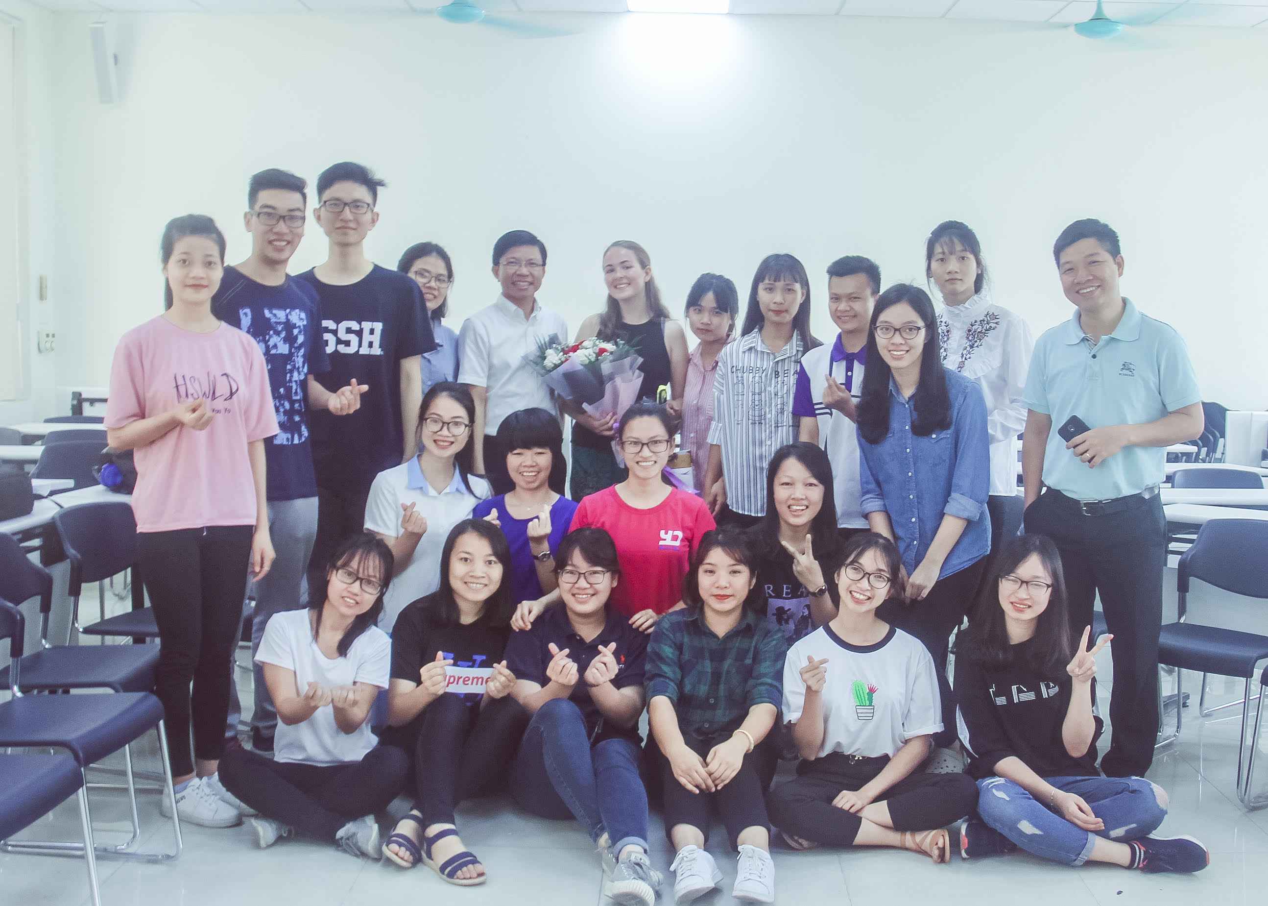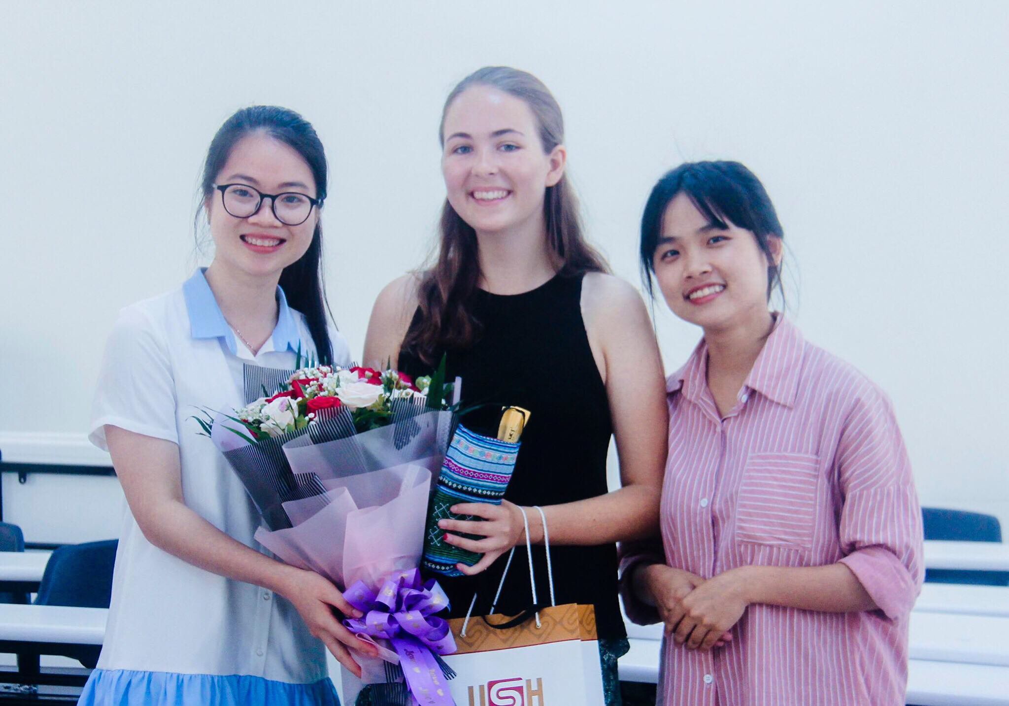 PGS.TS Hoàng Anh Tuấn gửi lời cảm ơn đến hai tình nguyện viên quốc tế Katrine và Rebekka. Thầy cho biết, lớp học tiếng Anh này là một cơ hội tốt giúp sinh viên trường cải thiện kỹ năng tiếng Anh. Thầy hy vọng sau khóa học này, các bạn sinh viên sẽ thu được thêm nhiều kiến thức và kỹ năng về ngoại ngữ, đồng thời mong muốn các bạn phải có kế hoạch sử dụng và luyện tập tiếng Anh hằng ngày. Thầy cũng gửi lời tạm biệt đến hai tình nguyện viên và chúc cho hành trình tiếp theo của họ gặt hái được nhiều thành công.