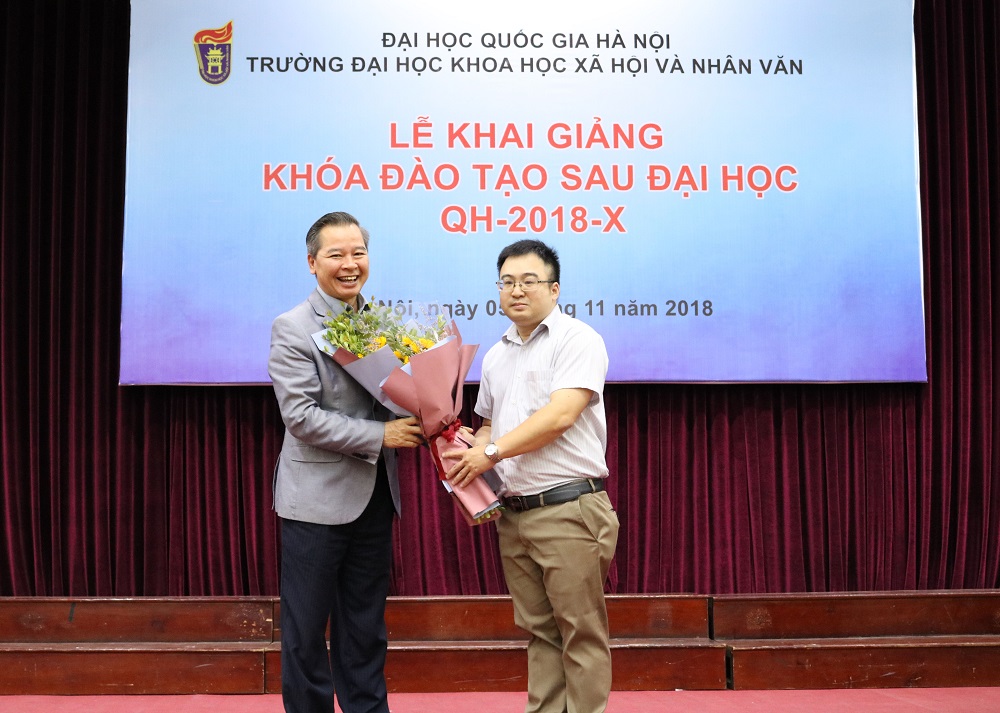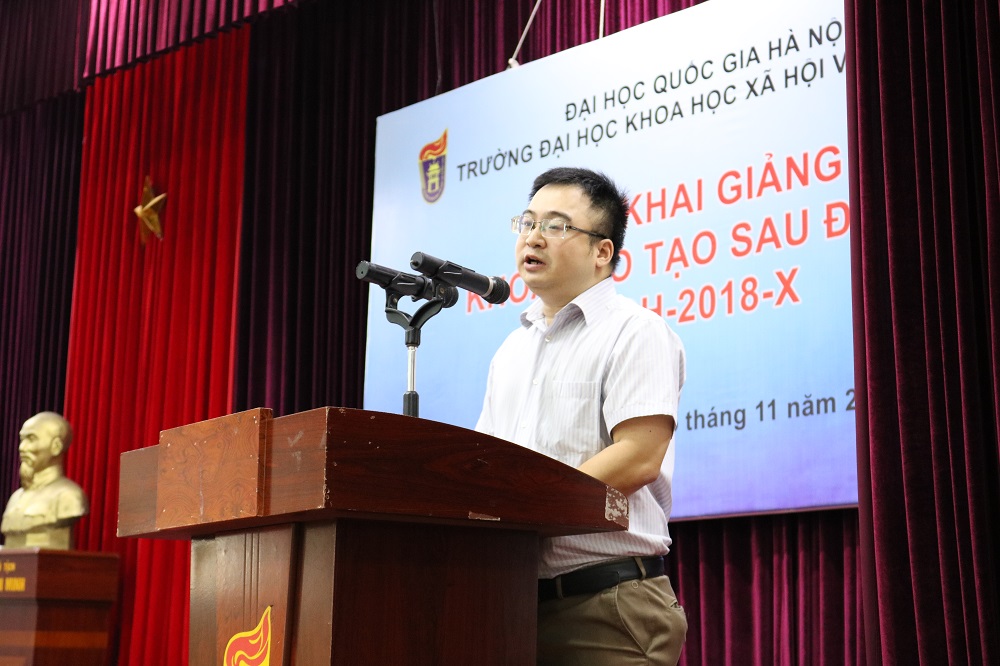Thay mặt Nhà trường, PGS.TS Bùi Thành Nam (Trưởng Phòng Đào tạo) đã công bố các quyết định và văn bản công nhận các nghiên cứu sinh (NCS) và học viên cao học (HVCH) trúng tuyển năm học 2018. Năm nay, Trường ĐHKHXH&NV có 46 NCS và 410 HVCH trúng tuyển; trong đó 118 HVCH trúng tuyển đợt I, 275 HVCH trúng tuyển đợt II, 17 HVCH là người nước ngoài.