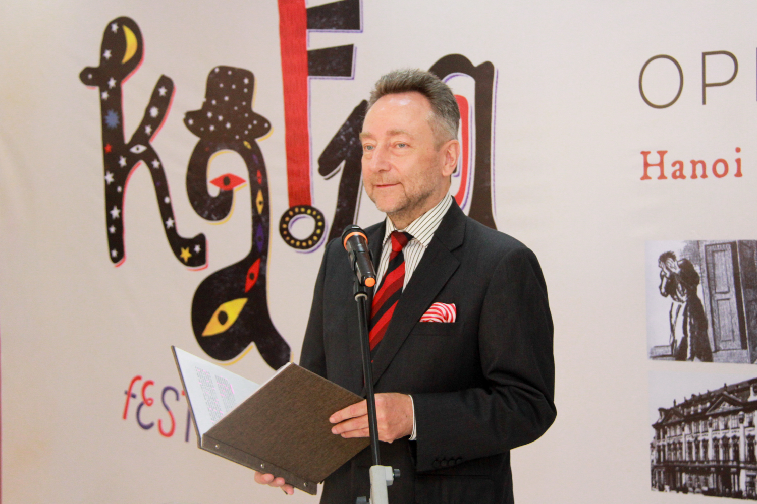 Phát biểu tại lễ khai mạc, ngài Vitezlav Grepl (Đại sứ Cộng hòa Séc tại Việt Nam) chia sẻ niềm vui và sự tin tưởng khi đưa chuỗi sự kiện văn hóa trong khuôn khổ Lễ hội Kafka đến tới Trường ĐHKHXH&NV.