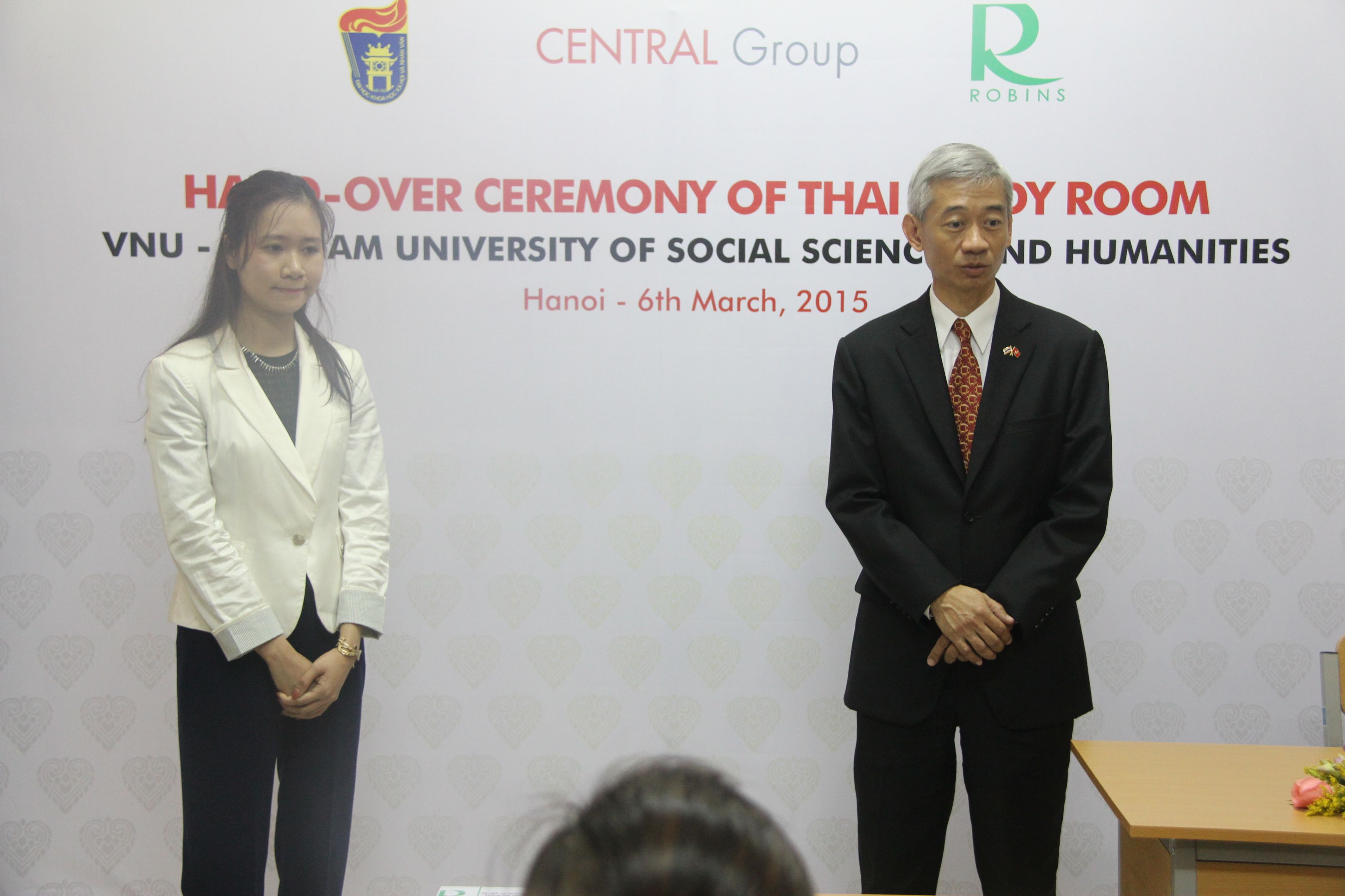 Trong phát biểu khai mạc, ngài Panyarak Poolthup đã bày tỏ mong muốn cùng với Trung tâm mua sắm Robins giúp đỡ Khoa Đông phương học nâng cấp, sửa chữa phòng Thái Lan học. Tới nay, cơ sở vật chất và nguồn học liệu tại Phòng Thái Lan học đã được nâng cấp đáng kể. Ngài Panyarak Poolthup hy vọng sự giúp đỡ này sẽ tạo điều kiện cho Trường phát huy việc nghiên cứu, đào tạo về Thái Lan học cũng như tăng cường quan hệ giữa Trường và Đại sứ quán Thái Lan nói riêng và giữa Việt Nam và Thái Lan nói chung.