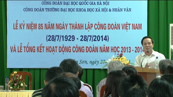 TS. Nguyễn Quang Liệu, Phó Chủ tịch Công đoàn Nhà trường đọc diễn văn kỷ niệm 85 năm Ngày thành lập Công đoàn Việt Nam
