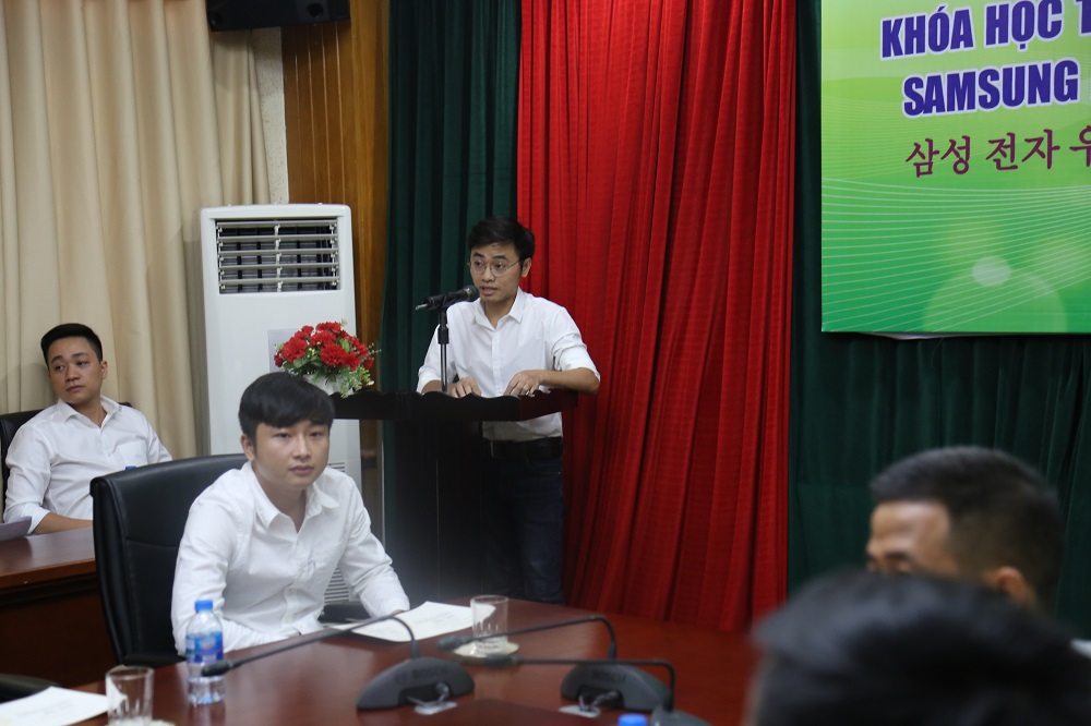 Thay mặt Ban lãnh đạo Trường ĐHKHXH&NV, PGS.TS Hoàng Anh Tuấn gửi lời cảm ơn tới Samsung Electronics đã tín nhiệm, ưu ái chọn Trường ĐHKHXH&NV là đơn vị đào tạo tiếng Hàn cho nhân viên ưu tú của công ty trong nhiều năm qua. Nhà trường hy vọng trong thời gian tới, Samsung Electronics vẫn lựa chọn mình là đối tác đào tạo. PGS.TS Hoàng Anh Tuấn cũng bày tỏ sự ấn tượng với kết quả mà các học viên đạt được. Thầy hy vọng, qua việc trau dồi thêm Hàn ngữ, các học viên có thể tìm hiểu thêm về văn hóa, đất nước, con người Hàn Quốc, lấy đó làm hành trang cho quá trình công tác và làm việc. Ngoài ra, những học viên muốn nâng cao hơn nữa trình độ có thể yêu cầu Nhà trường tổ chức thêm các lớp đào tạo.