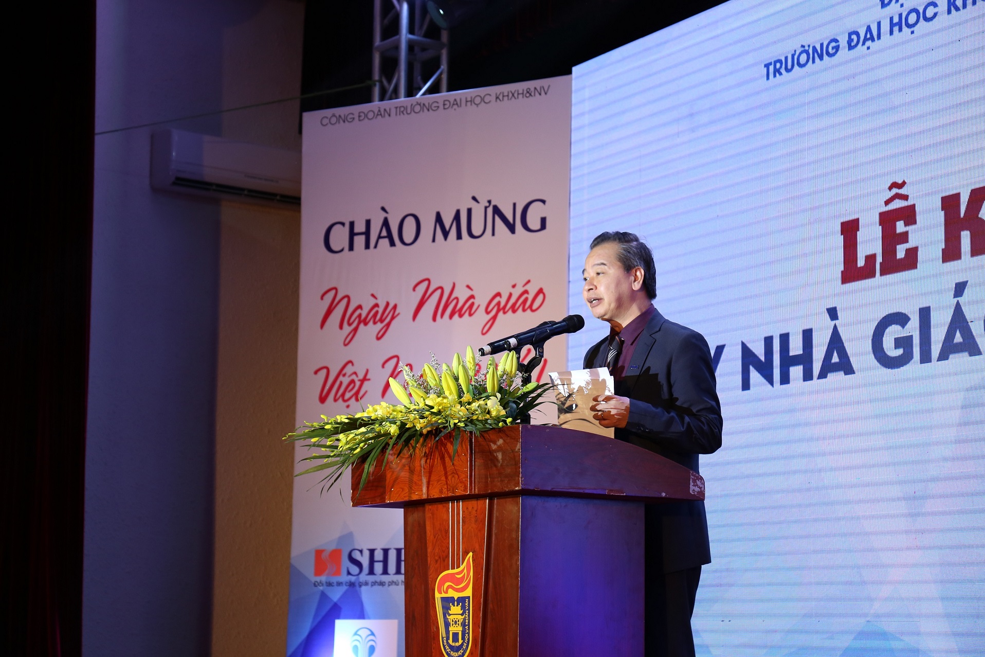GS.TS Phạm Quang Minh (Hiêu trưởng Trường ĐHKHXH&NV) phát biểu tại lễ kỷ niệm: "Làm thầy thật sự không dễ; làm thầy ở một ngôi trường đại học nghiên cứu tiên tiến xuất sắc có bề dày truyền thống lại càng không dễ. Và càng khó hơn khi làm thầy ở giai đoạn toàn cầu hóa và cách mạng công nghiệp 4.0"