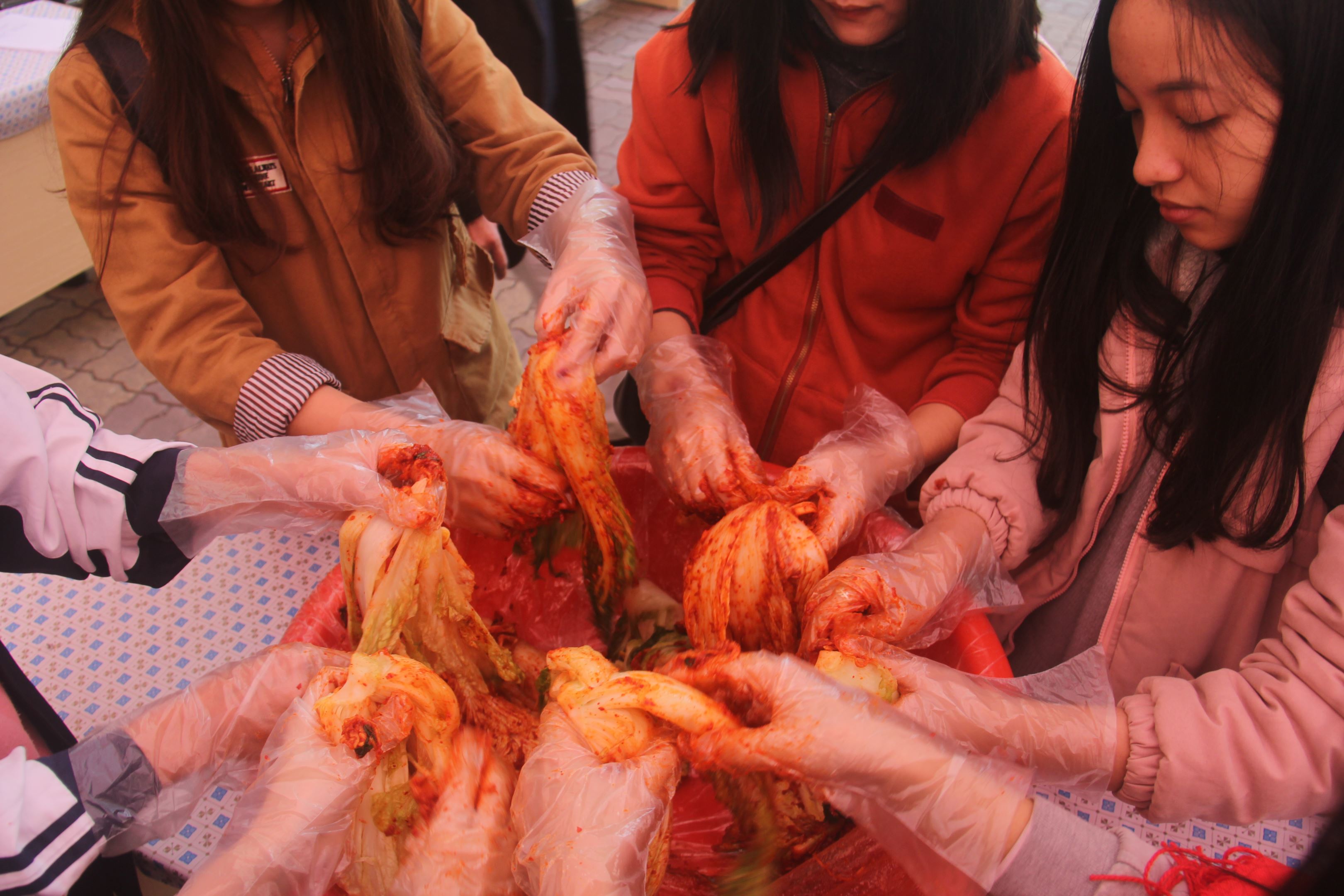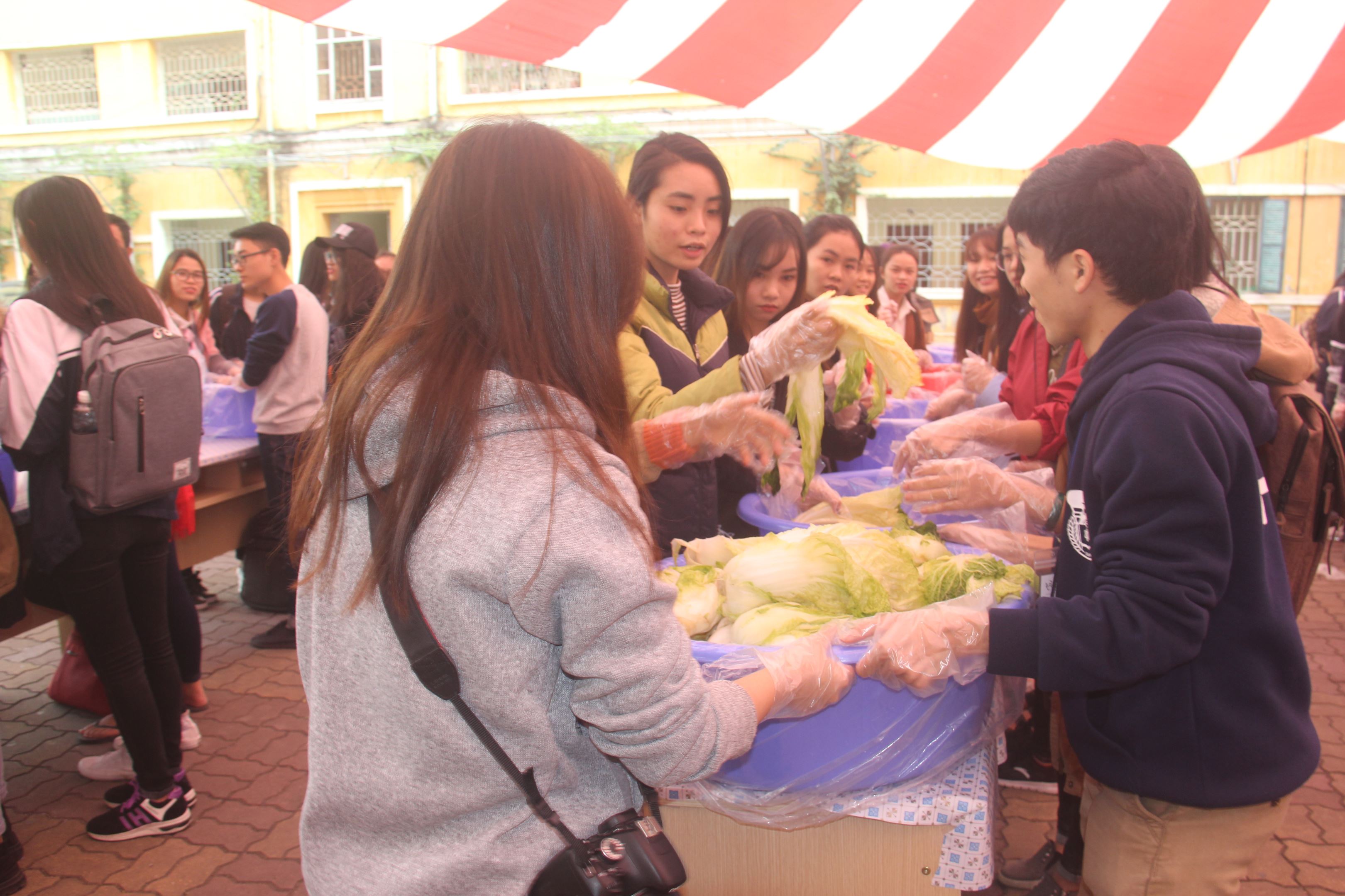Mùa đông ở Hàn Quốc vốn rất khắc nghiệt với những ngày nhiệt độ xuống tới âm độ kéo dài. Đặc điểm khí hậu này khiến cho người dân nơi đây không thể trồng bất cứ loại rau nào trong mùa lạnh, bởi vậy họ đã tìm ra cách lên men thực phẩm với muối để bảo quản và lưu giữ đồ ăn cho mùa đông lạnh kéo dài. Cách thức này không chỉ được được áp dụng cho các loại rau củ mà còn trở thành nghệ thuật bảo quản đồ ăn trong nền văn hóa ẩm thực Hàn Quốc. Các bạn học viên đã được chuyên gia ẩm thực giới thiệu và hướng dẫn cách làm kim chi cải thảo.