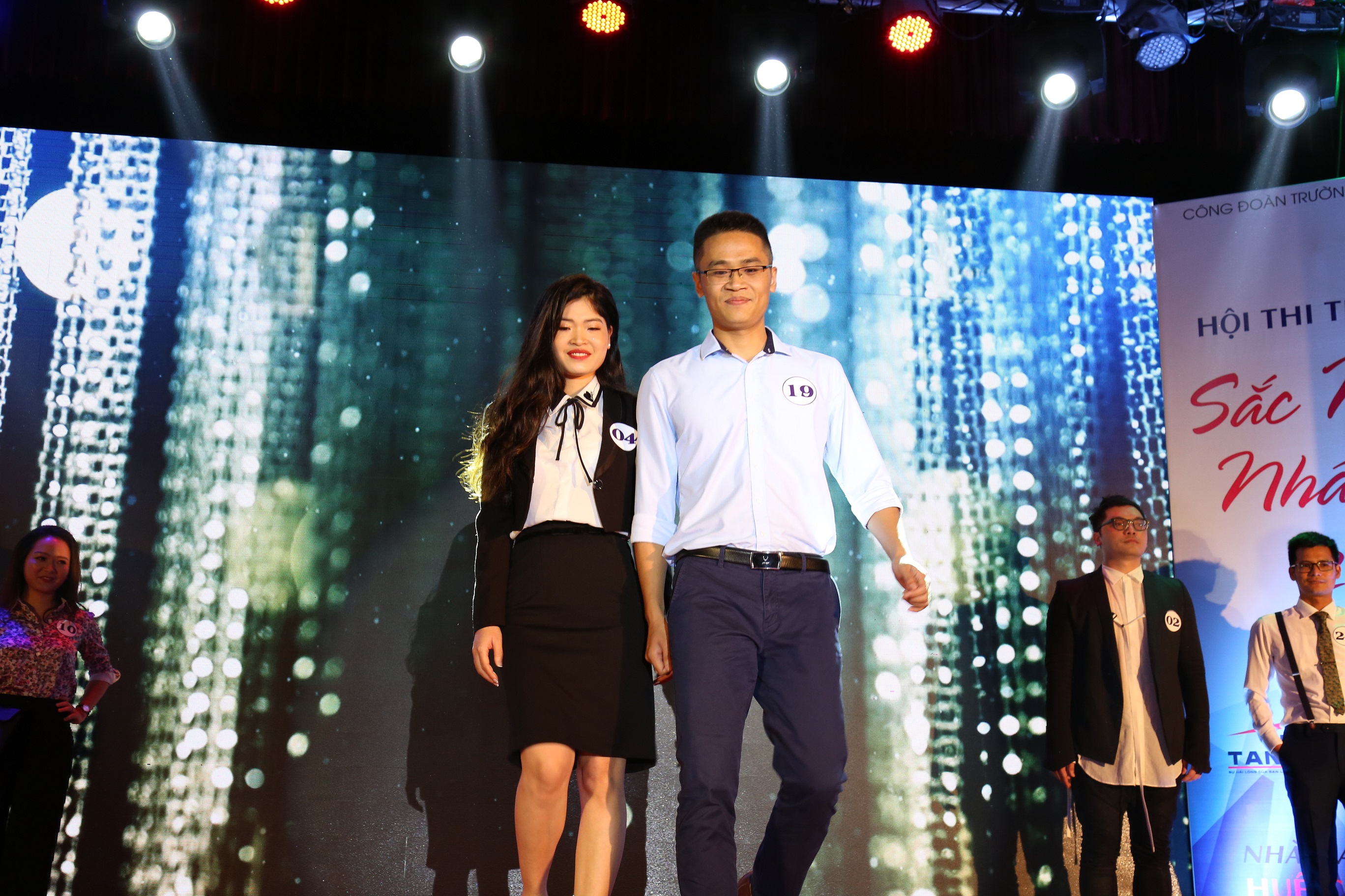 CĐV Nguyễn Đình Tuấn (Công đoàn Hiệu bộ II) và CĐV Nguyễn Thị Huyền Vân (Công đoàn Khoa Việt Nam học và Tiếng Việt)