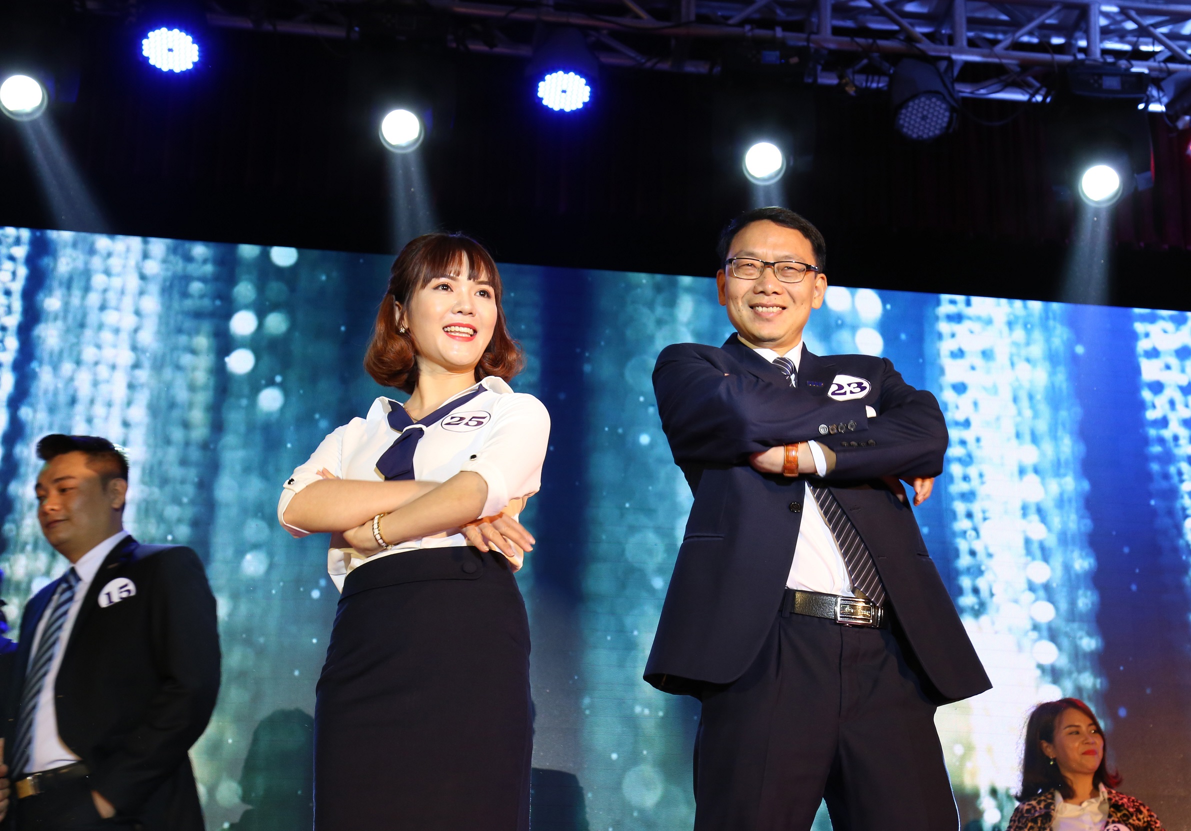 CĐV Vũ Thị Ngà (Công đoàn Hiệu bộ III) và CĐV Phạm Văn Huệ (Công đoàn Hiệu bộ I)