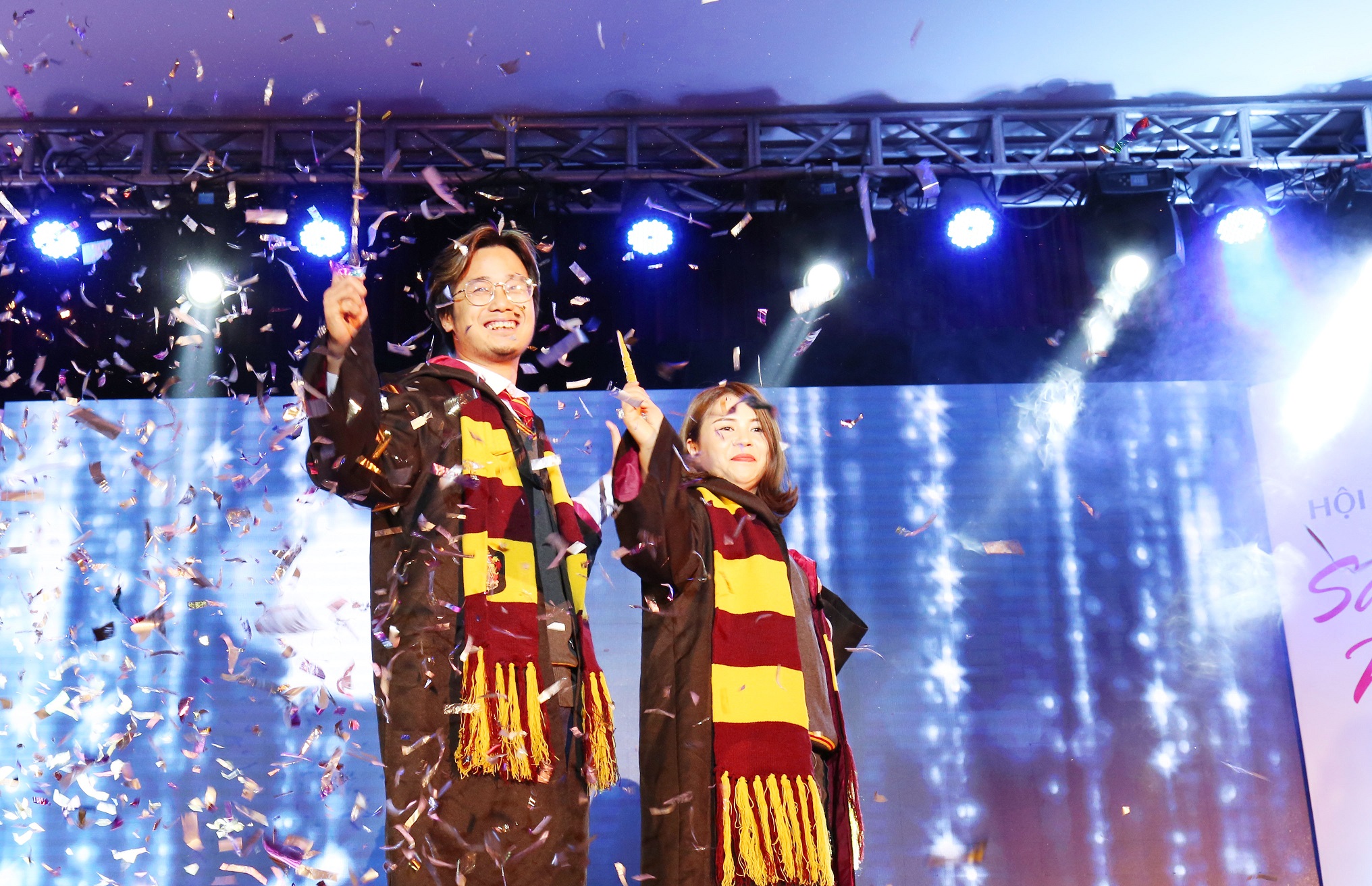 CĐV Phạm Hoàng Giang (Công đoàn Khoa Triết học) và CĐV Đoàn Thu Nguyệt (Công đoàn Khoa Triết học)