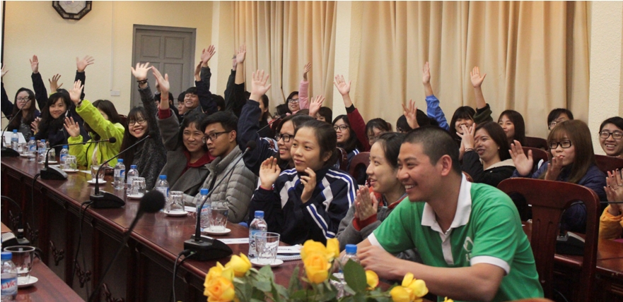 Buổi tọa đàm thu hút gần một trăm sinh viên tham dự với một không khí sôi nổi, hào hứng.