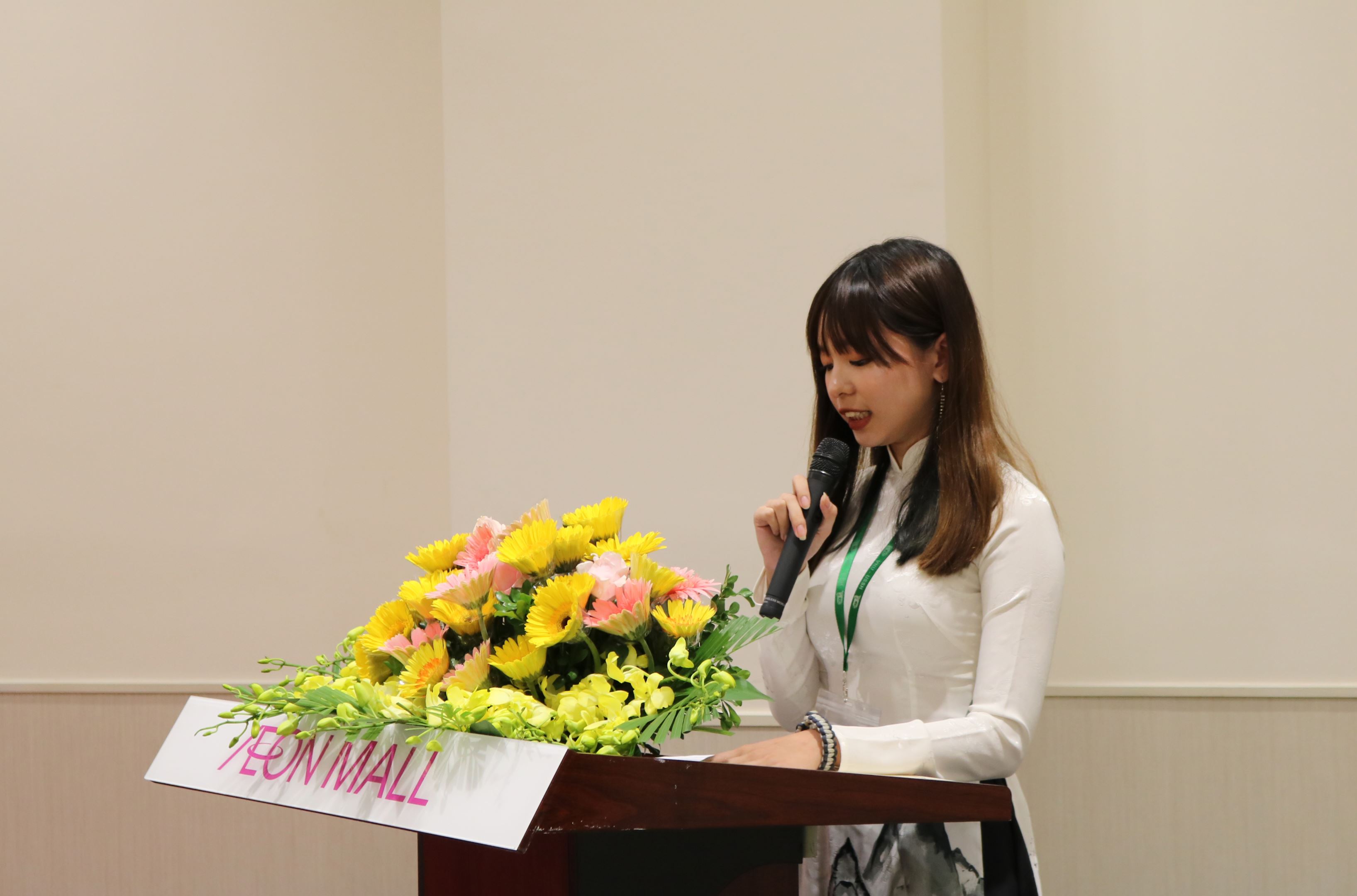 Tập đoàn AEON đã trao các suất học bổng cho sinh viên của Trường ĐHKHXH&NV, Trường Đại học Ngoại thương và Học viện Nông nghiệp Việt Nam. Đại diện cho các sinh viên được nhận học bổng, em Bùi Nhật Linh (Khoa Quốc tế học) đã phát biểu cảm ơn sự ủng hộ của tập đoàn AEON, đồng thời chia sẻ với các đại diện của AEON về ước mơ trong tương lai của mình.