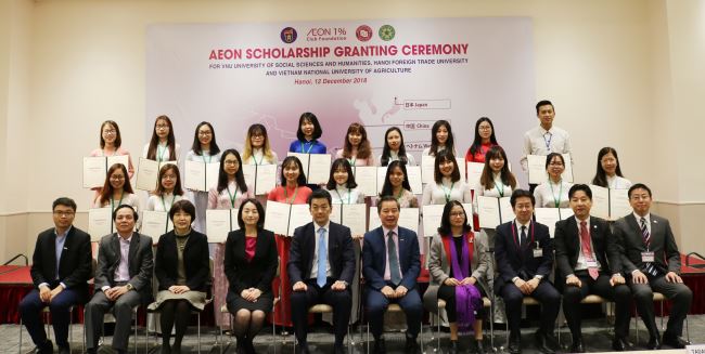 Phát biểu tại Lễ trao học bổng, ông Honda Yosei (Tổng Thư ký AEON 1% Club) cho biết, mục tiêu của học bổng là hỗ trợ các bạn sinh viên trong hoạt động học tập, nghiên cứu khoa học và giao lưu với sinh viên Việt Nam, qua đó thắt chặt hơn nữa quan hệ hữu nghị hai nước Việt Nam - Nhật Bản.