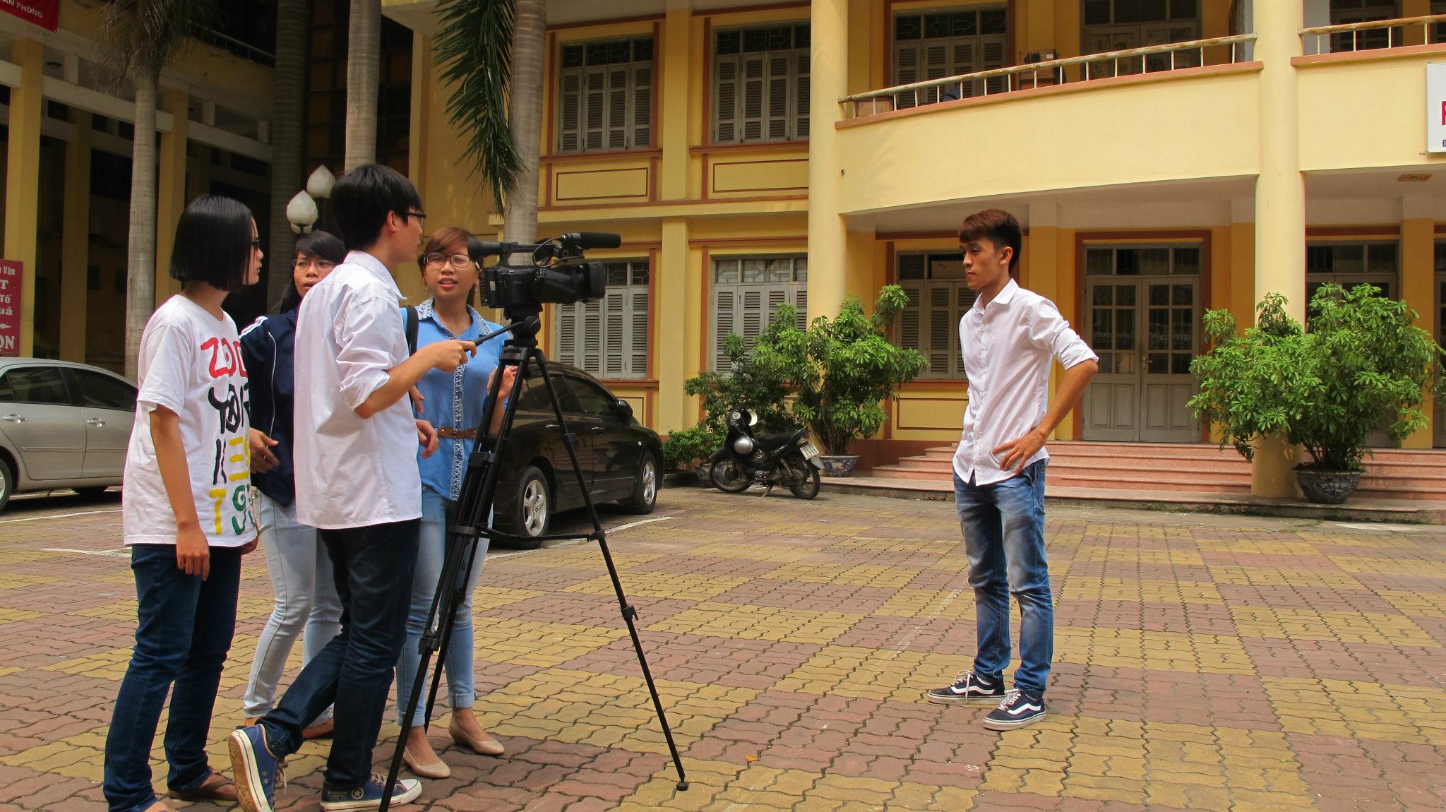 Các bạn sinh viên thử tác nghiệp ngoài hiện trường