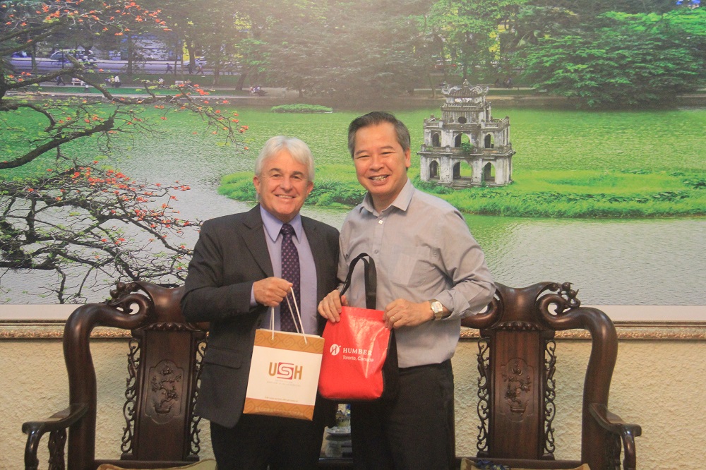 Tại buổi làm việc, GS.TS Phạm Quang Minh đã bày tỏ niềm vui khi được chào đón đoàn công tác của Cao đẳng Humber. Giáo sư Hiệu trưởng chia sẻ về chiến lược quốc tế hóa của Trường ĐHKHXH&NV, thông qua tăng cường các chương trình giảng dạy bằng tiếng Anh và mở rộng hợp tác với các đối tác quốc tế. Nhà trường mong muốn được trao đổi, hợp tác với Cao đẳng Humber qua những động cụ thể như tổ chức hội thảo chung, trao đổi sinh viên, giảng viên, tiến hành các nghiên cứu khoa học chung.