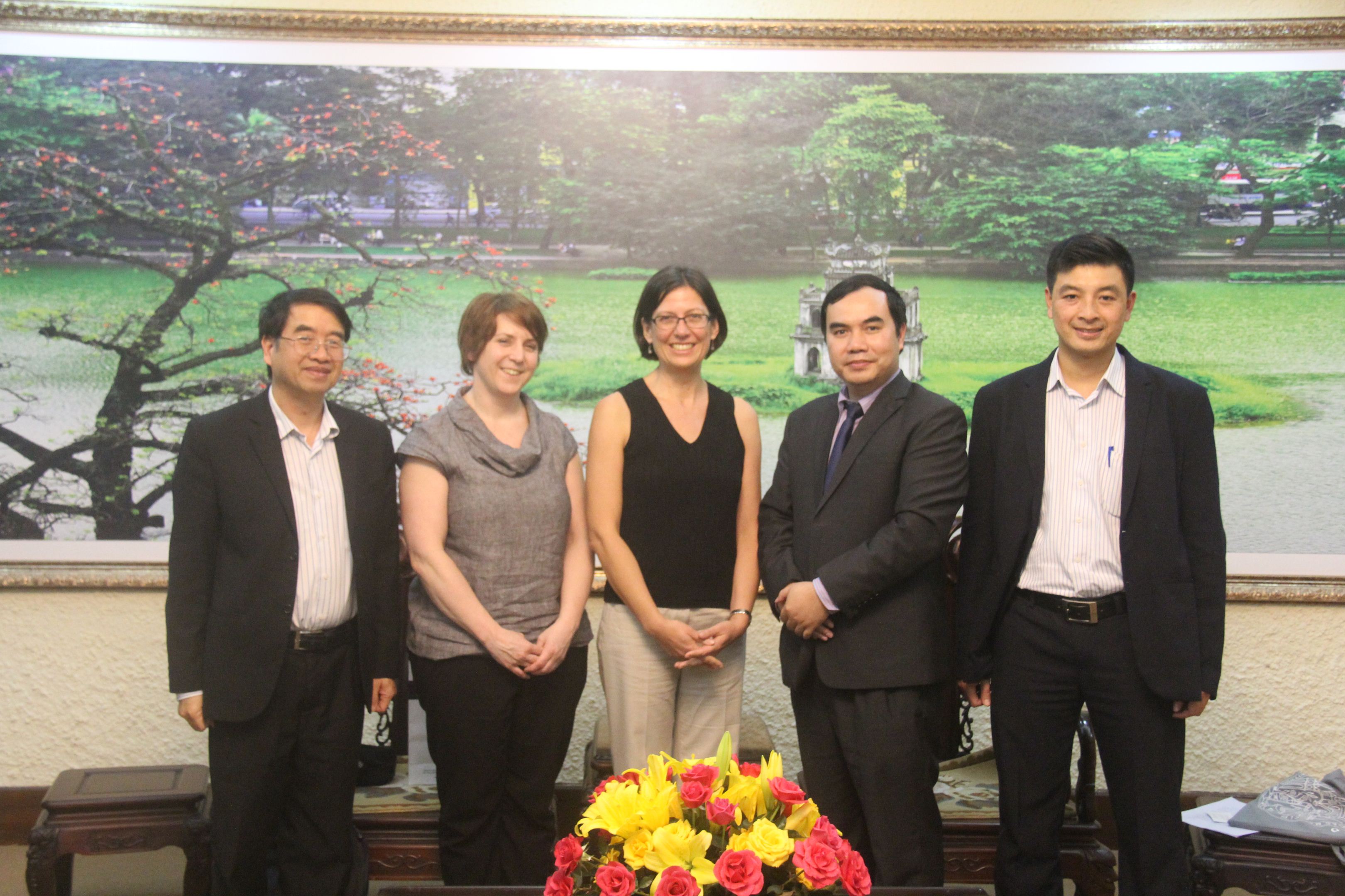PGS. TS Trần Viết Nghĩa trao đổi quà và chụp ảnh lưu niệm với PGS. TS Margit Bussmann
