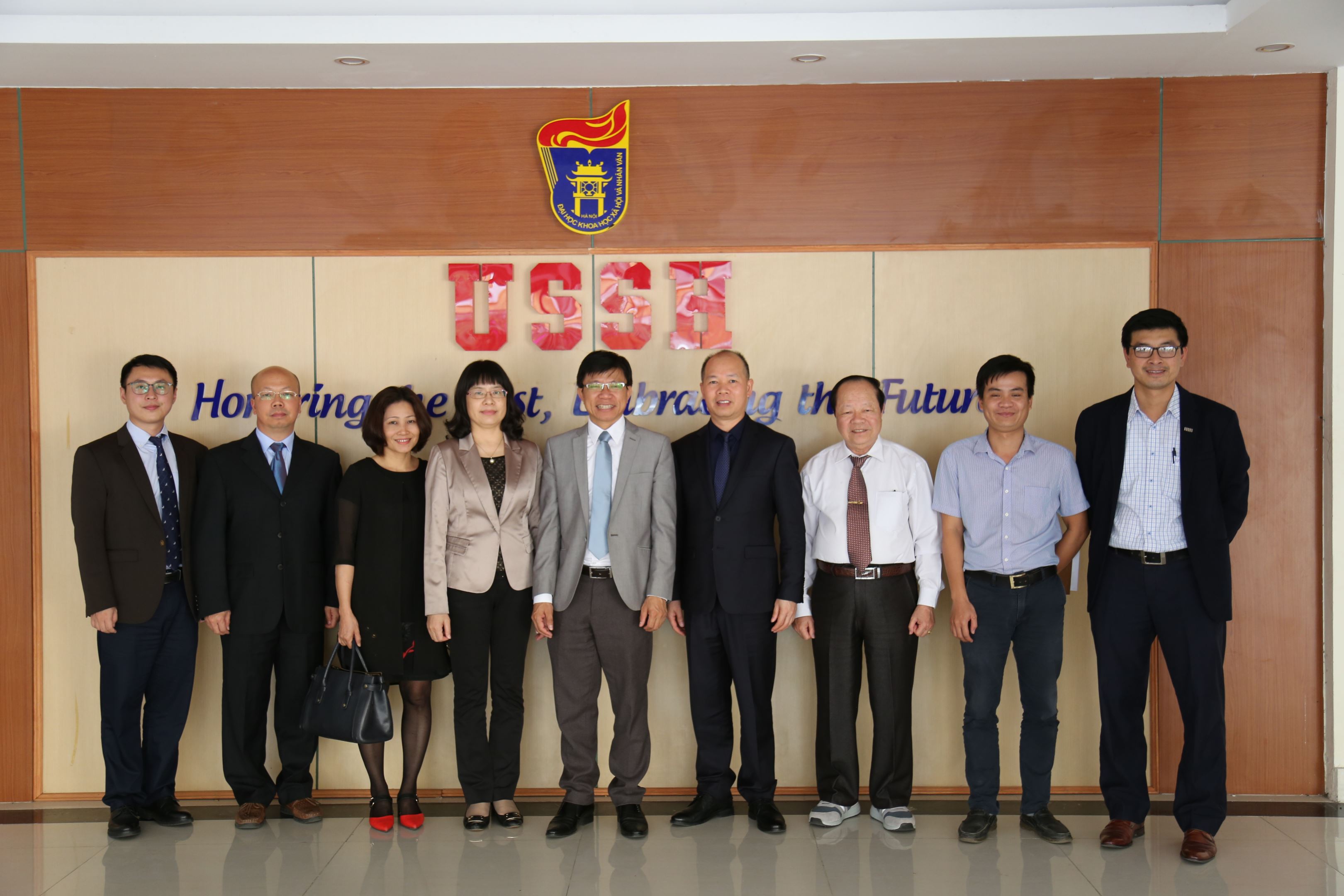 PGS.TS Hoàng Anh Tuấn và cán bộ Nhà trường chụp ảnh với đoàn công tác phía bạn