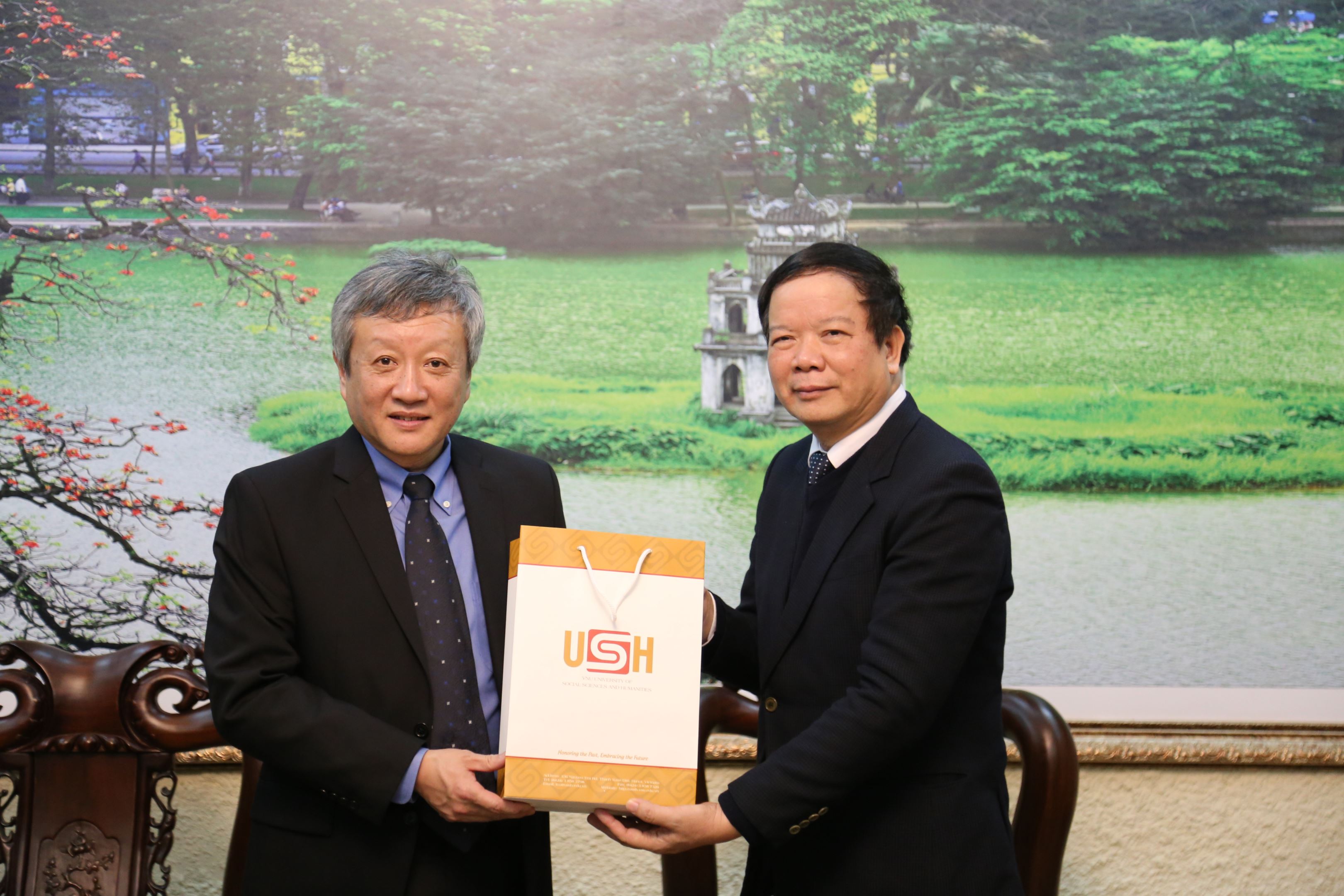 Tại buổi làm việc, GS.TS Nguyễn Văn Kim đã giới thiệu ngắn gọn về Trường ĐHKHXH&NV. Khoa Đông phương học của Nhà trường là một trong những địa chỉ nghiên cứu, đào tạo Trung Quốc học hàng đầu tại Việt Nam. Nhà trường có quan hệ với hơn 300 đối tác và đã đón tiếp nhiều lưu học sinh, trong đó các sinh viên Trung Quốc chiếm số đông. Nhiều sinh viên Trung Quốc tốt nghiệp tại Nhà trường đã trở thành các chuyên gia về ngôn ngữ và văn hóa Việt Nam, các đại sứ, nhà ngoại giao ở Việt Nam. Phó Hiệu trưởng hy vọng hai trường có thể thúc đẩy các hợp tác thiết thực trong tương lai.