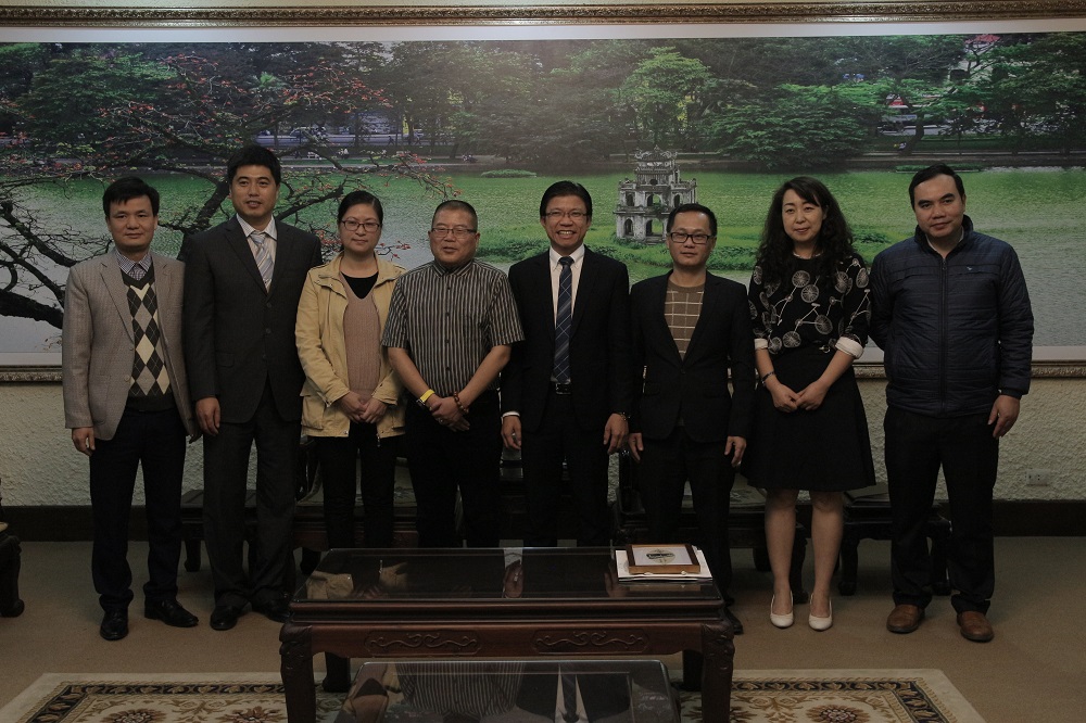 PGS. TS Hoàng Anh Tuấn chụp ảnh lưu niệm với ông Li Wei và đoàn công tác Đại học Vân Nam