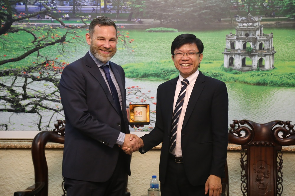 Tại buổi làm việc, PGS.TS Hoàng Anh Tuấn đã giới thiệu về chiến lược mở rộng liên kết đào tạo quốc tế của Trường ĐHKHXH&NV. Đối với các cơ sở giáo dục Châu Âu Nhà trường đã và đang thực hiện nhiều dự án chung với các trường đại học như Dự án xây dựng chuyên ngành Nghiên cứu Phát triển Quốc tế với Đại học College Cork (Ireland), chương trình Thạc sĩ Quản trị Truyền thông với Đại học Stirling (Anh Quốc). Từ năm 2016, Nhà trường cũng là thành viên của Dự án Tăng cường Năng lực Đổi mới và Nghiên cứu tại Việt Nam (ENHANCE) do Chương trình Erasmus Plus và Liên minh Châu Âu (EU) tài trợ.