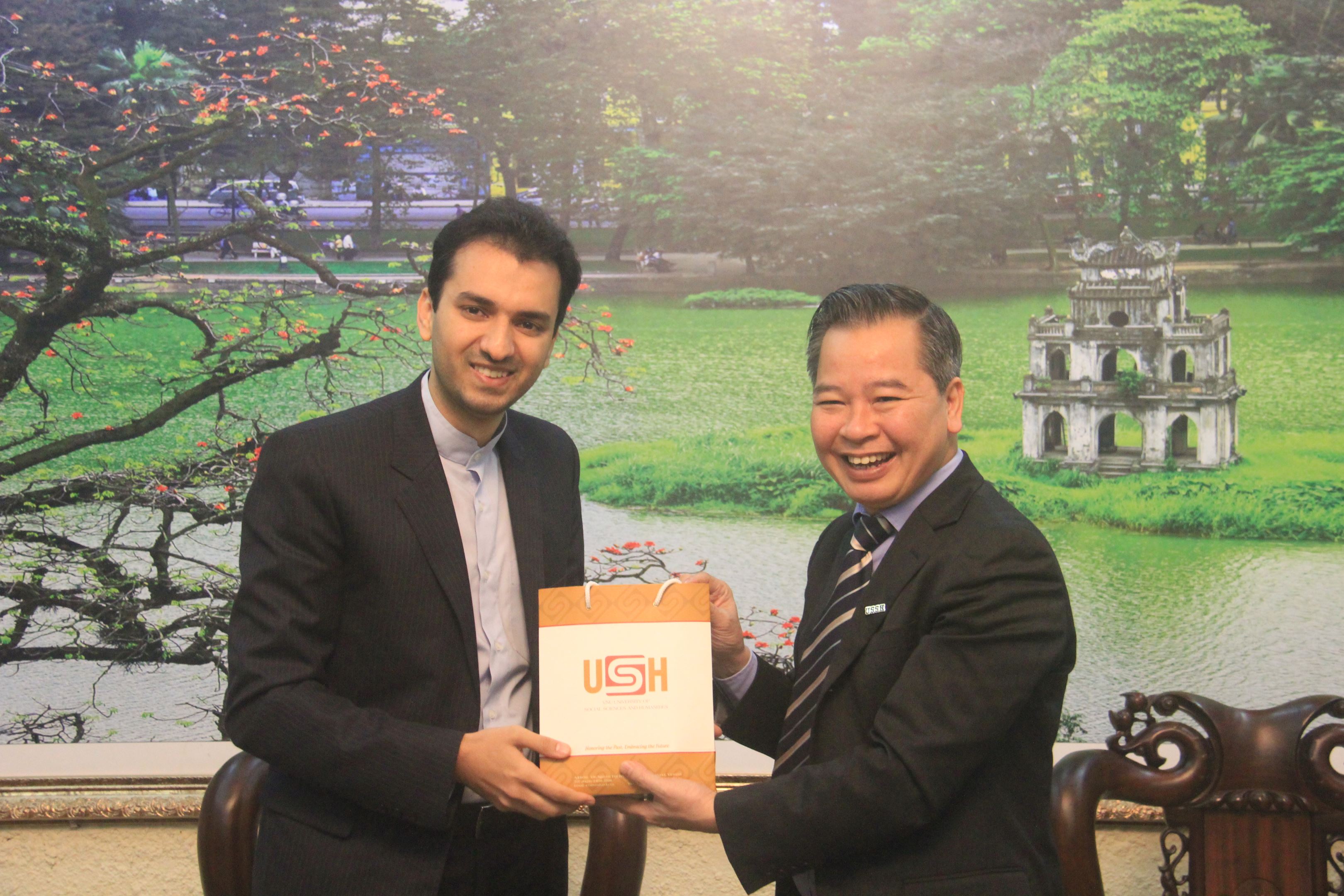 Tại buổi làm việc, GS. TS Phạm Quang Minh (Hiệu trưởng Trường ĐHKHXH&NV - ĐHQGHN) nhấn mạnh, Nhà trường có quan hệ hợp tác chặt chẽ với Đại sứ quán Iran, cũng như lịch sử đào tạo và nghiên cứu lâu năm về đất nước này. Nhà trường muốn tiếp tục hợp tác với Đại sứ quán Iran trong các hoạt động như duy trì và phát triển Phòng Iran, đào tạo nguồn nhân lực trình độ cao về Iran học, xuất bản các nghiên cứu quốc tế về đất nước và con người Iran. Nhà trường cũng hy vọng sẽ mở rộng quan hệ với các trường đại học của Iran, mà điển hình là Đại học Tehran.
