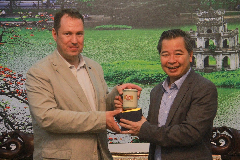 Tại buổi làm việc, TS. Csicsmann László đã giới thiệu ngắn gọn về Đại học Corvinus Budapest, trong đó tập trung vào Khoa KHXH & Quan hệ quốc tế. Khoa được thành lập năm 1963, có quan hệ gần gũi với Bộ Ngoại giao và một số bộ khác ở Hungary. Các ngành đào tạo chính của Khoa là quan hệ quốc tế, khoa học chính trị, xã hội học, khoa học truyền thông. Các định hướng nghiên cứu chính hiện nay của Khoa tập trung vào các vấn đề liên ngành ở Châu Âu như hội nhập, di cư, sự chuyển hướng chính trị và kinh tế, tham nhũng, người thiểu số, phát triển quốc tế. Khoa có các viện trực thuộc như Viện Kinh tế Thế giới; Viện Quan hệ Quốc tế; Viện Địa lý; Địa kinh tế và Phát triển bền vững. TS. Csicsmann László bày tỏ mong muốn triển khai hợp tác giữa Khoa KHXH& Quan hệ quốc tế và Trường ĐHKHXH&NV.