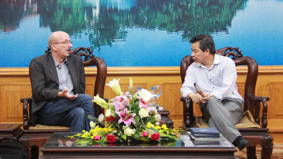 GS. Detlef Briesen đề xuất phương án tổ chức hội thảo với PGS.TS Phạm Quang Minh (Ảnh: Trung Hiếu/USSH)