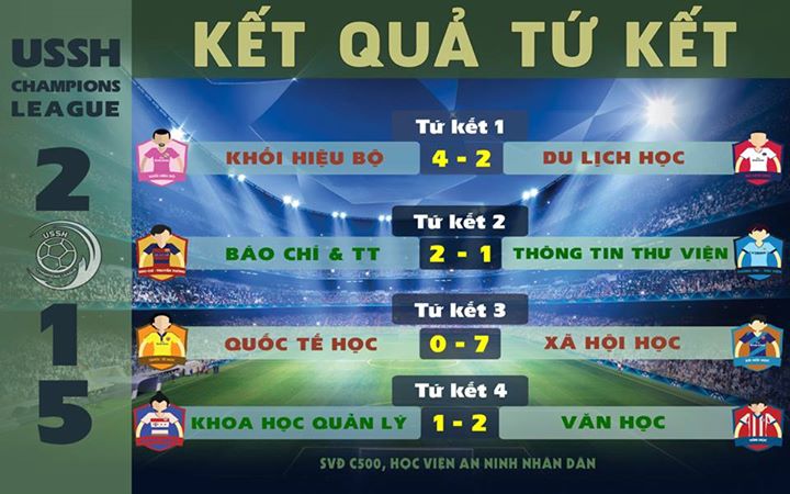 Trận tứ kết 2 UCL đã khép lại với tỉ số 2-1 nghiên về các chàng trai đến từ đội bóng Khoa Báo chí và Truyền thông. Trong một ngày cả mà hai đội chơi đều ngang tài và ngang sức, chỉ một chút phép màu may mắn mới giúp Báo chí và Truyền thông, sau nhiều năm được góp mặt ở vòng đấu dành cho 4 đội mạnh nhất.