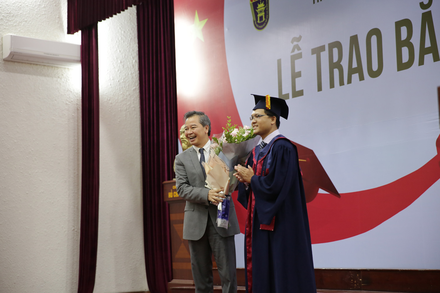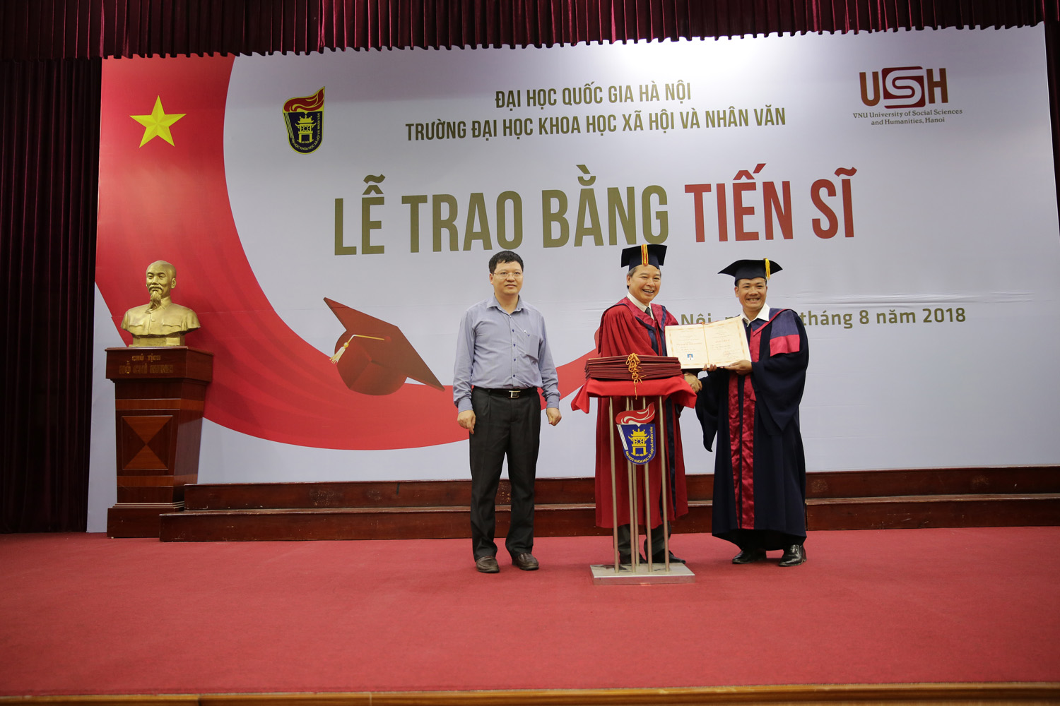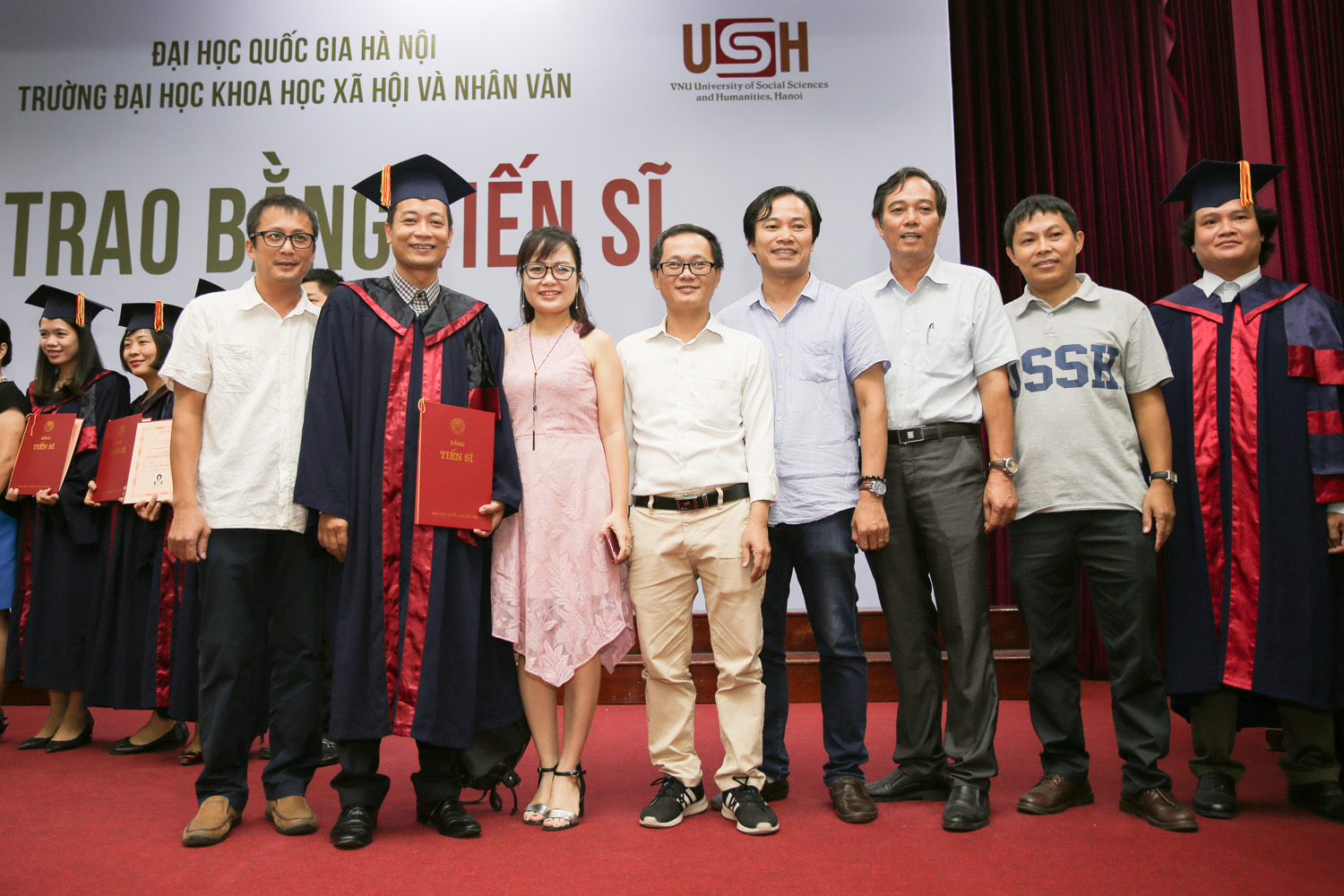 Phát biểu chúc mừng các tân tiến sĩ, GS.TS Phạm Quang Minh (Hiệu trưởng Trường ĐHKHXH&NV) cho rằng đây là thành quả xứng đáng sau biết bao nỗ lực và vất vả của các NCS. Chính đam mê với công việc nghiên cứu đã giúp NCS vượt qua những khó khăn trong học tập và cuộc sống để đạt đến thành công hôm nay. Nhưng tấm bằng Tiến sĩ chỉ là khởi đầu cho chặng đường nghiên cứu dài sắp tới, rất cần sự chủ động, sáng tạo và tự hoàn thiện hơn nữa của mỗi người. GS Hiệu trưởng mong rằng sẽ gặp lại các tân Tiến sĩ với vai trò là những chuyên gia nghiên cứu hàng đầu trên các lĩnh vực khoa học trong tương lai, góp phần đưa nền khoa học Việt Nam hội nhập với thế giới. Thành công của các tân Tiến sĩ góp phần tạo nên uy tín học thuật của Nhà trường, giúp lan toả thương hiệu của Nhà trường trong xã hội.