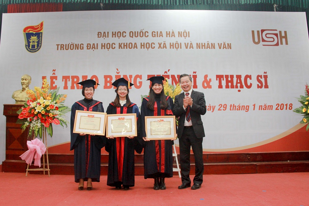 Năm nay, Nhà trường trao bằng Tiến sĩ cho 50 nghiên cứu sinh đã hoàn thành chương trình học và bảo vệ thành công luận án theo quy định. Các nghiên cứu sinh đến từ nhiều khoa và chuyên ngành đào tạo của Nhà trường như Chính trị học, Lịch sử, Lưu trữ học và Quản trị văn phòng, Ngôn ngữ học, Bộ môn Nhân học, Quốc tế học, Triết học, Tâm lý học.