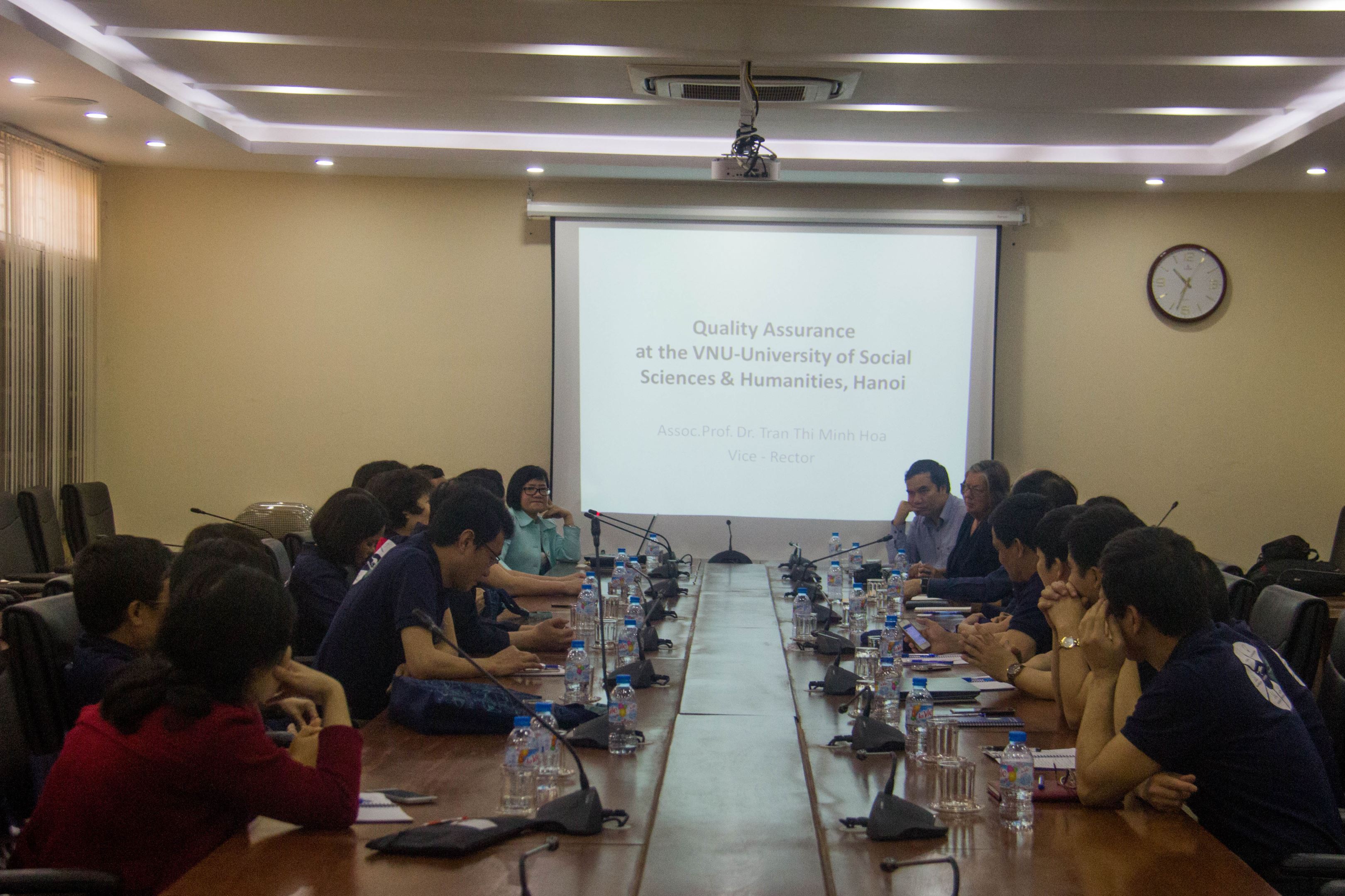 PGS.TS Trần Thị Minh Hòa đã chia sẻ nhiều thông tin và những kết quả Nhà trường đạt được trong công tác kiểm định và đảm bảo chất lượng trong thời gian. Trường là một trong những đại học đầu tiên tham kiểm định chất lượng theo bộ tiêu chuẩn của Bộ Giáo dục và Đào tạo. Trường là đơn vị dẫn đầu về công tác kiểm định và đảm bảo chất lượng với 91% tiêu chí đạt theo bộ tiêu chuẩn của Bộ. Trường có 03 CTĐT cử nhân được kiểm định theo chuẩn AUN-QA là Ngôn ngữ học, Đông phương học và Triết học. Dự kiến đến năm 2020, Trường sẽ hoàn thành toàn bộ kế hoạch kiểm định CTĐT bậc cử nhân. Trong đó, 1/3 số chương trình sẽ được đánh giá theo bộ tiêu chuẩn AUN-QA. Công tác kiểm định đã trở thành hoạt động thường xuyên nhằm nâng cao chất lượng các CTĐT theo hướng đạt chuẩn khu vực và quốc tế; qua đó góp phần hình thành văn hoá chất lượng trong các hoạt động của Nhà trường. Phó Hiệu trưởng Trần Thị Minh Hoà cũng bày tỏ mong muốn thiết lập quan hệ hợp tác với các trường đại học trong và ngoài nước về lĩnh vực kiểm định và đảm bảo chất lượng.